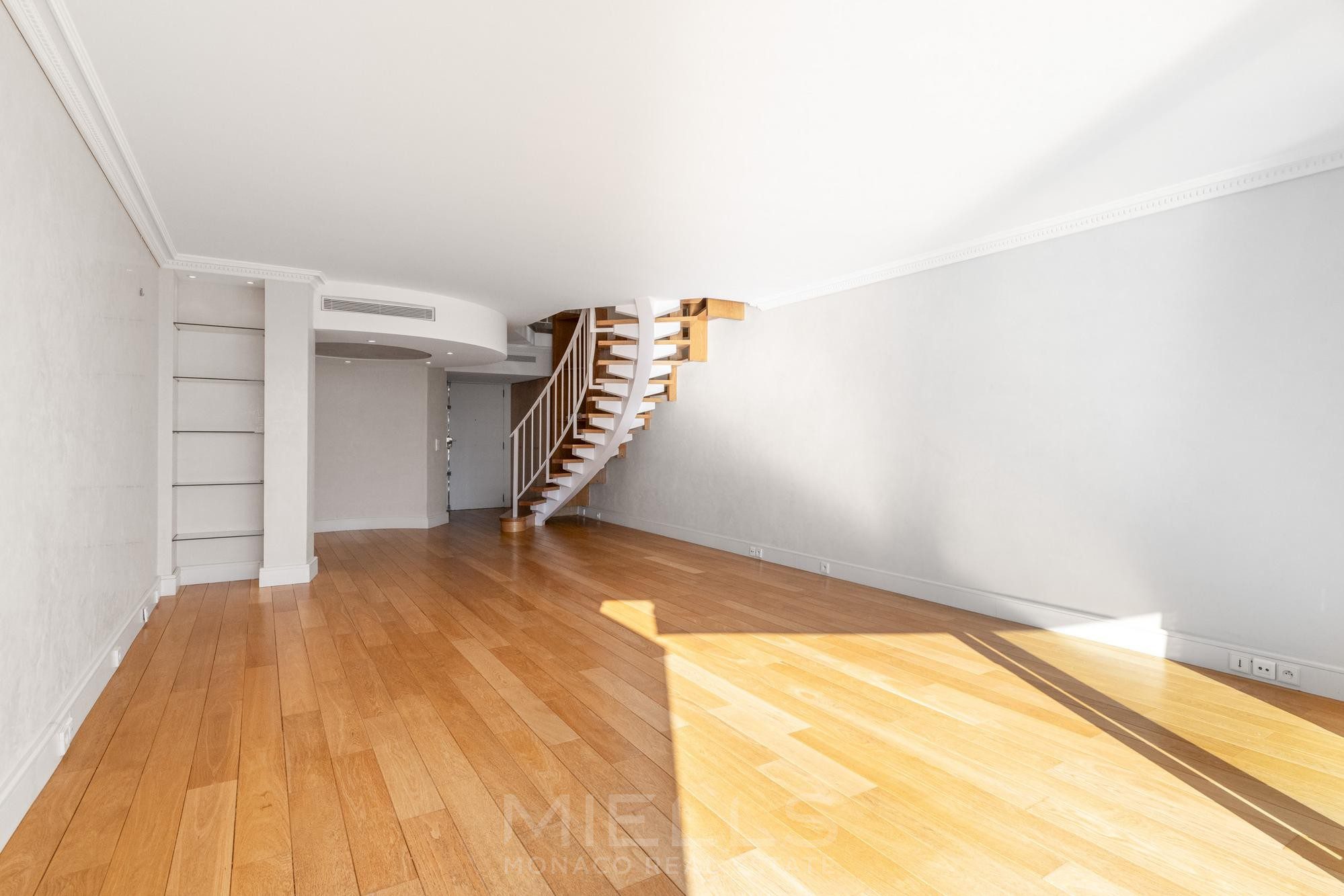 Superbe appartement en duplex situé dans la prestigieuse résidence du Monte-Carlo Star, en plein cœur du Carré d'or, bénéficiant d'une magnifique vue sur la mer, le port Hercule et le Rocher.