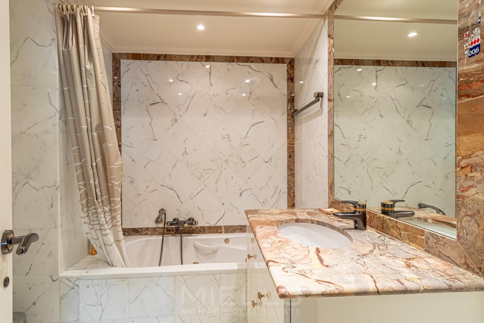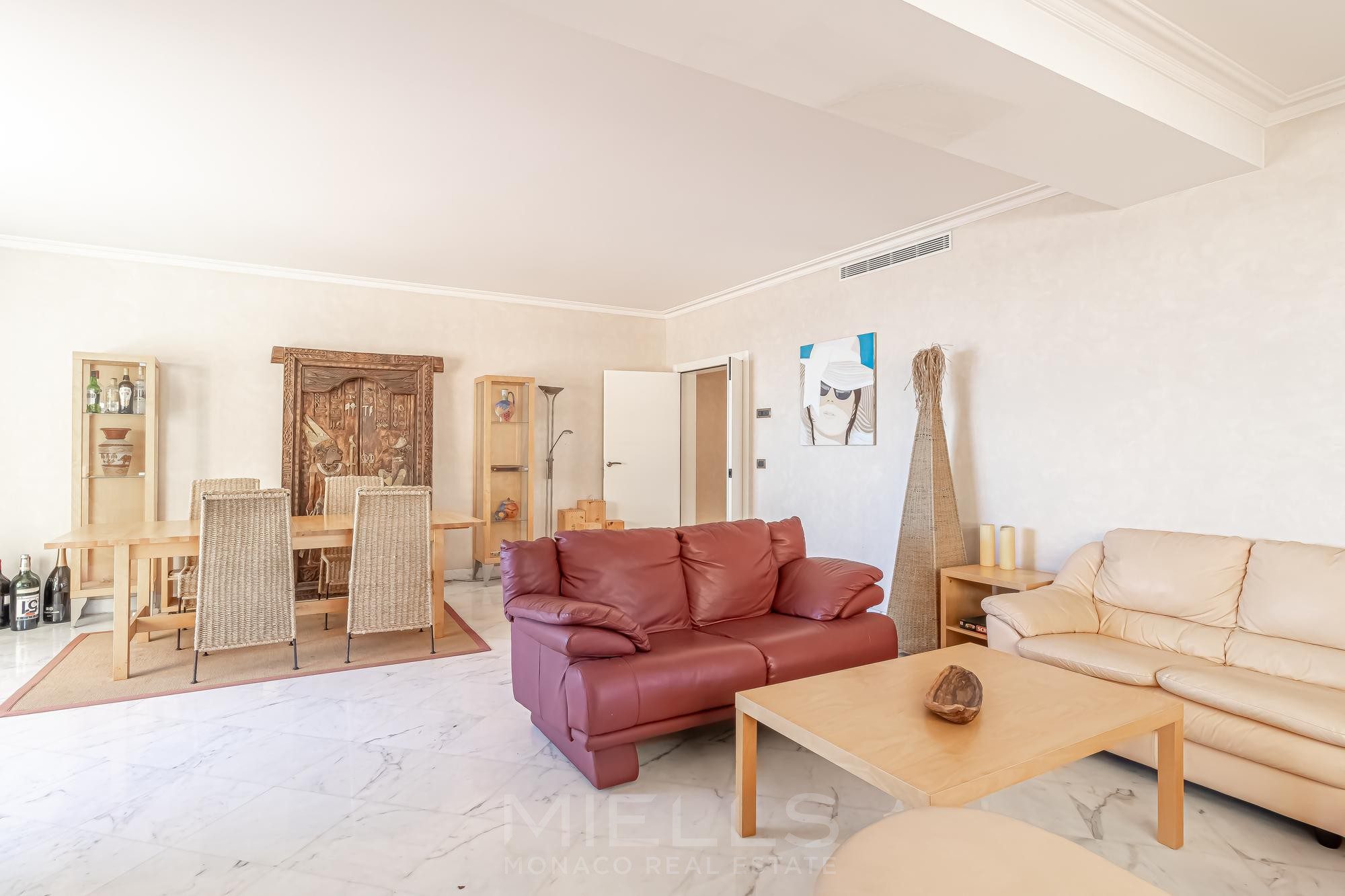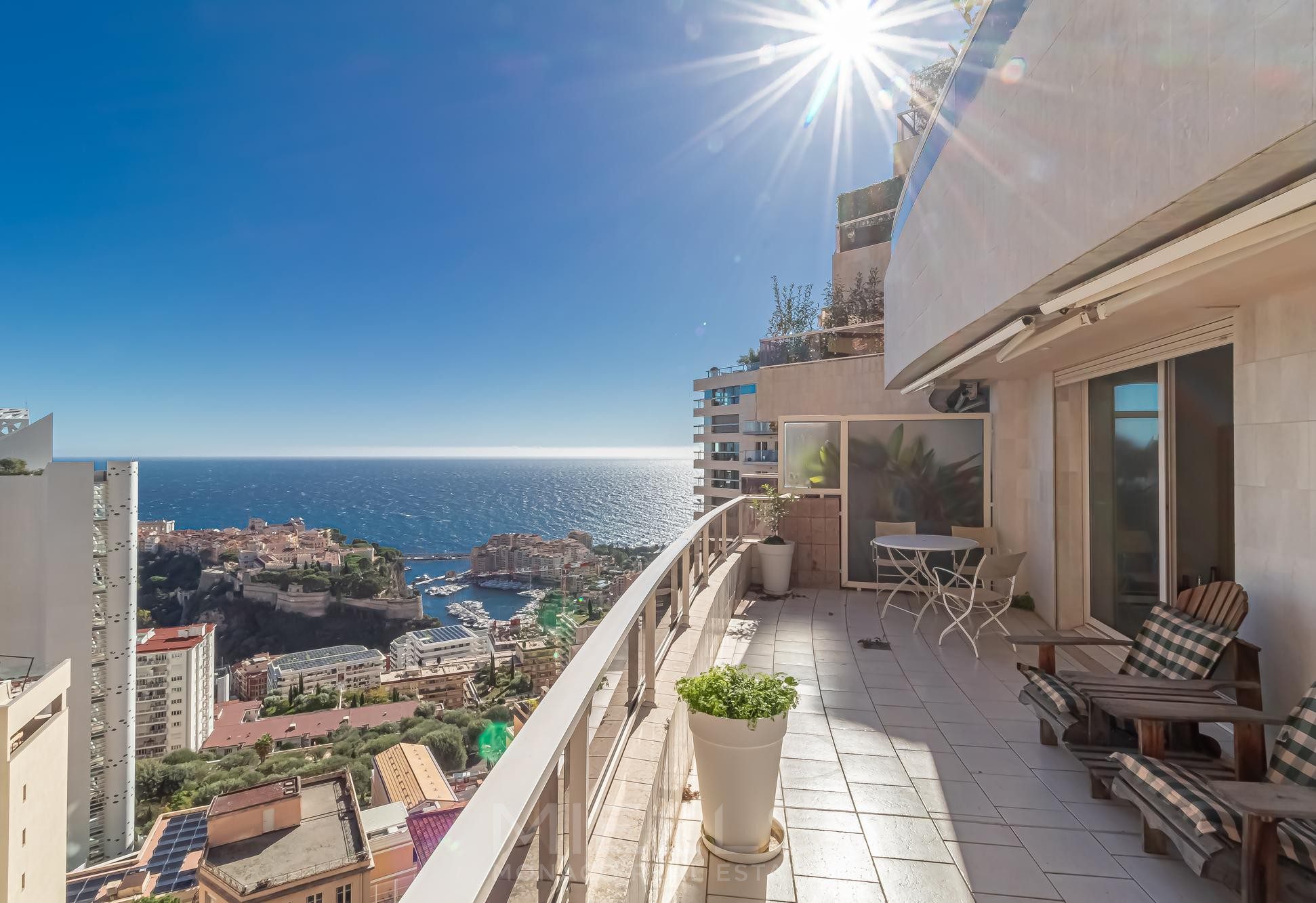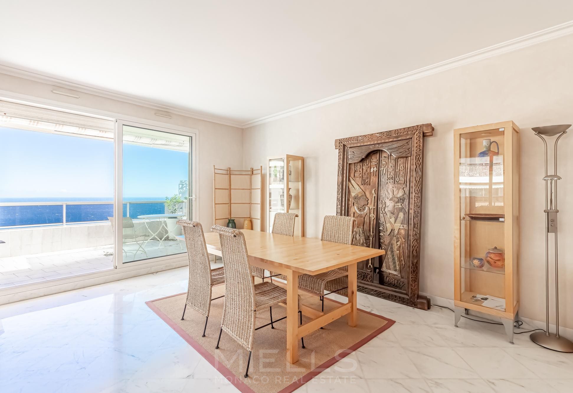Situé en étage élevé avec un beau potentiel de rénovation, ce bel appartement lumineux d'une surface de 198 m2 dont 79 m2 de terrasse bénéficie d'une très jolie vue sur la mer et le Rocher.