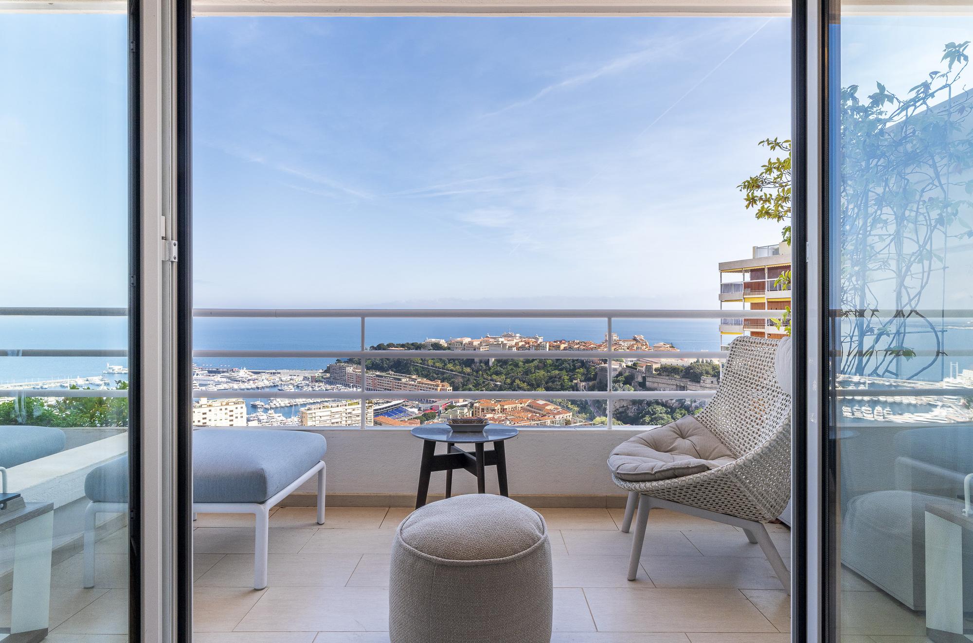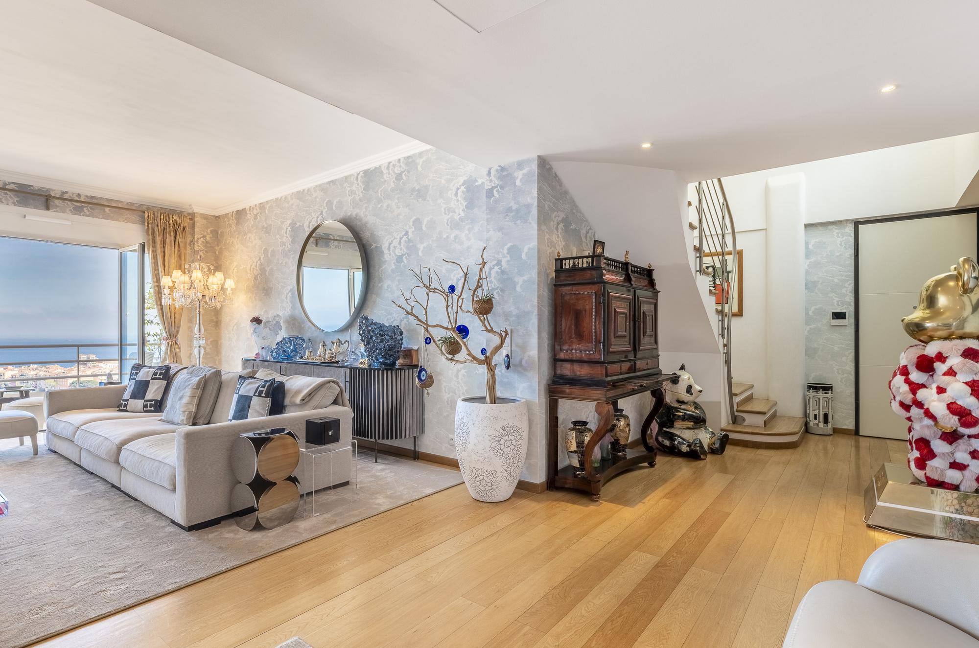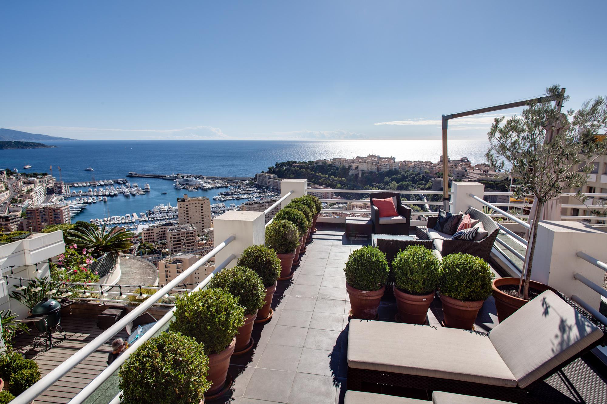 Dans le quartier du Jardin-Exotique, ce spacieux penthouse familial bénéficie de 268 m2 d'espaces extérieurs aux notes méditerranéennes offrant des vues époustouflantes sur la mer, la Principauté et le Rocher.