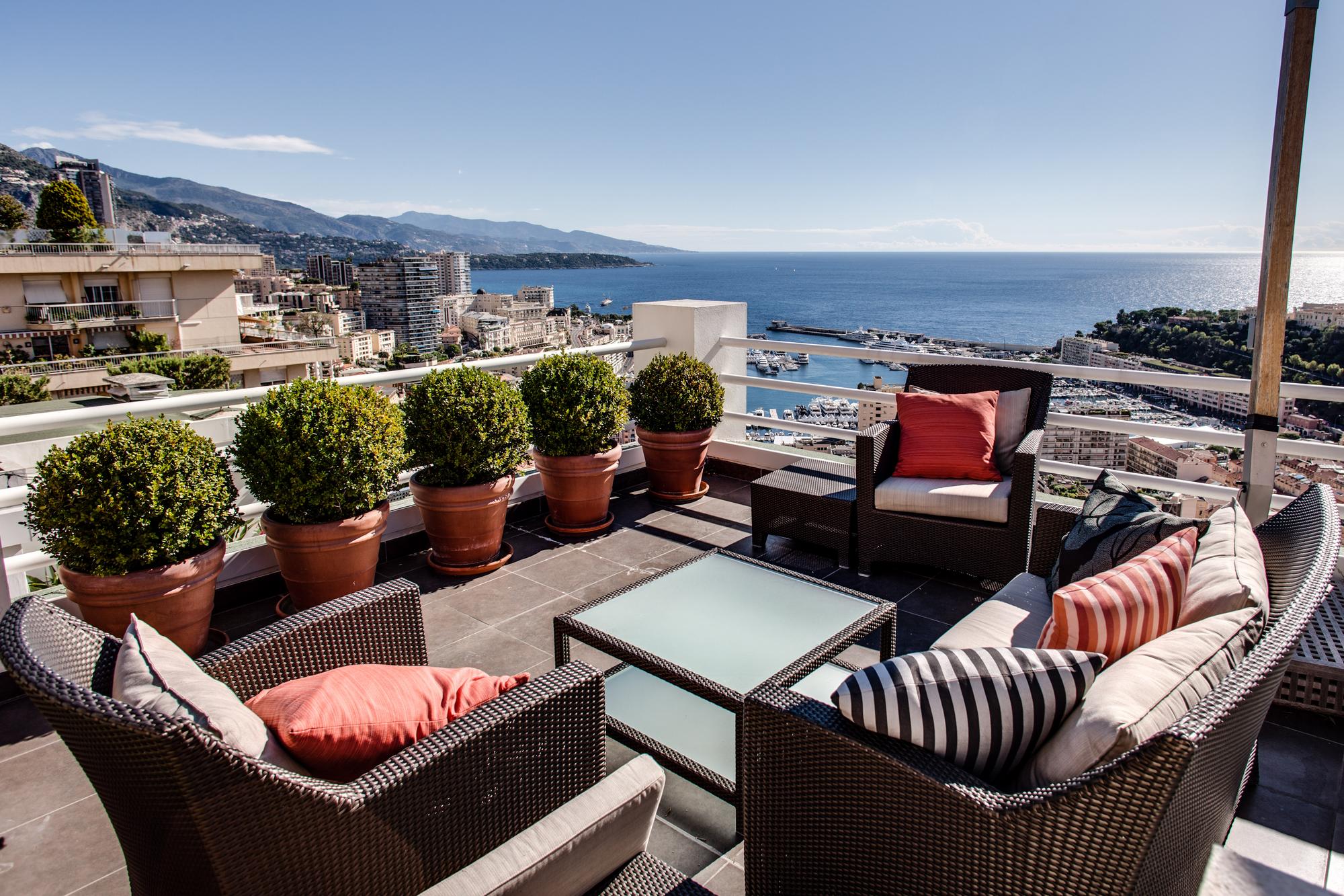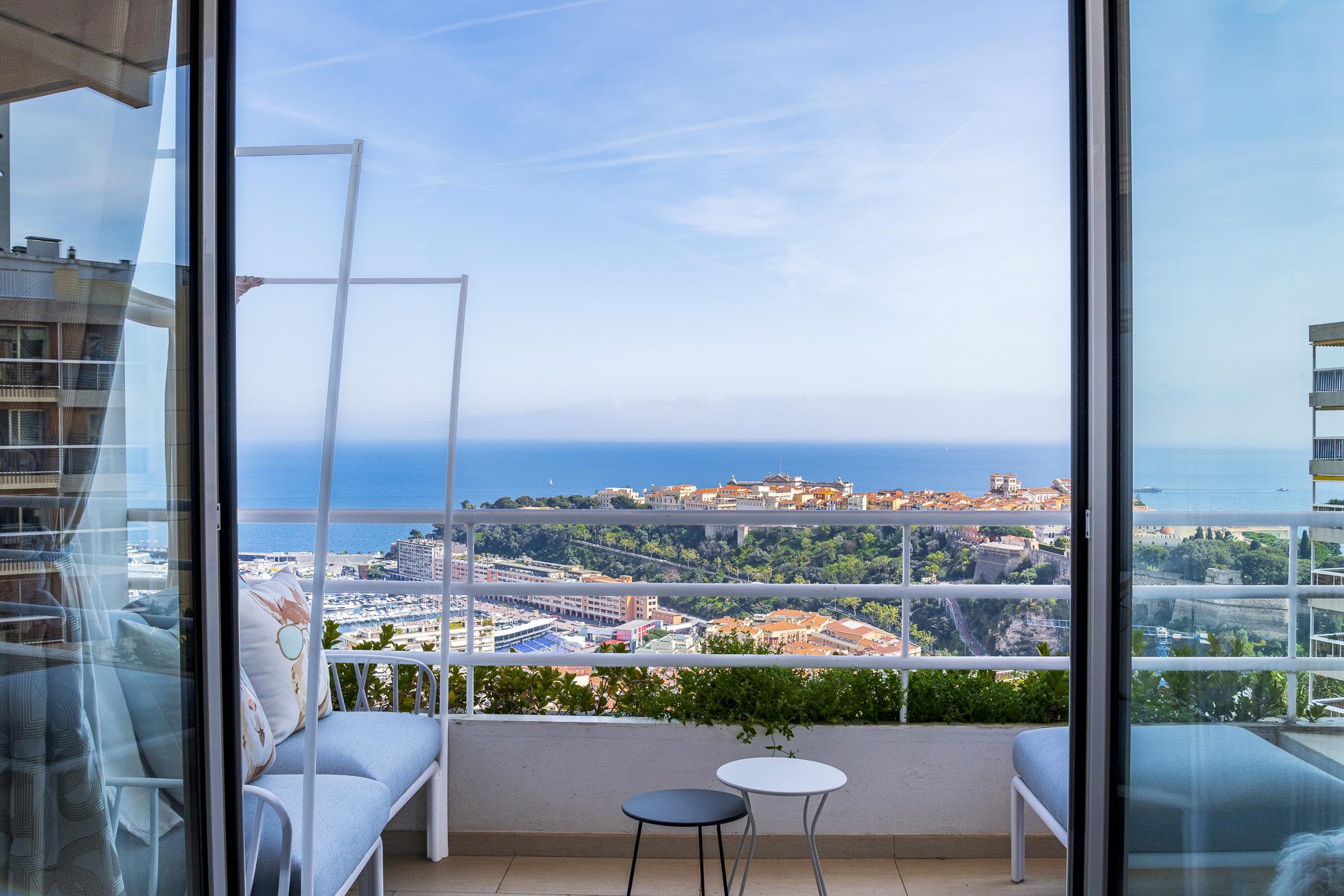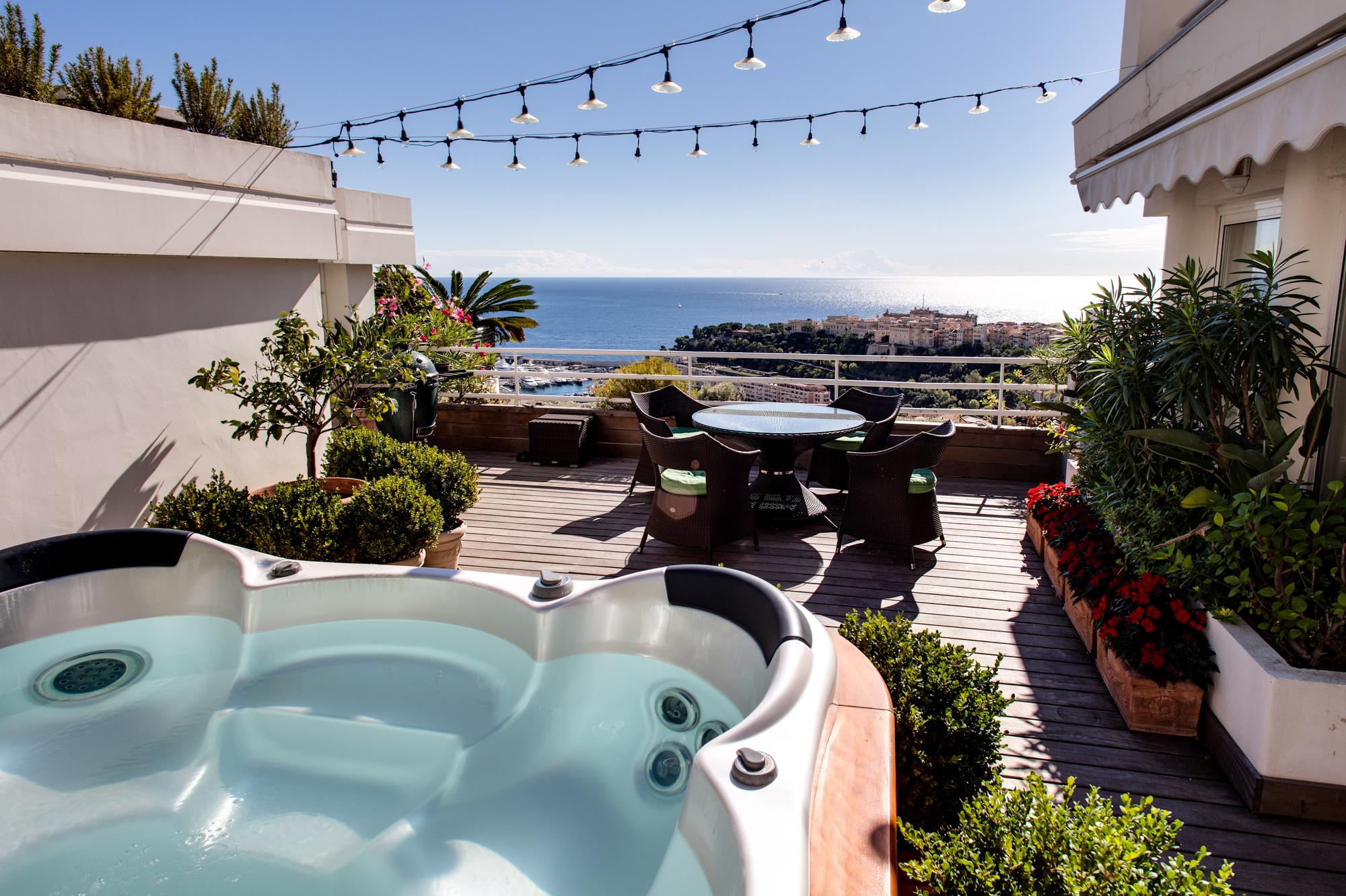 Dans le quartier du Jardin-Exotique, ce spacieux penthouse familial bénéficie de 268 m2 d'espaces extérieurs aux notes méditerranéennes offrant des vues époustouflantes sur la mer, la Principauté et le Rocher.