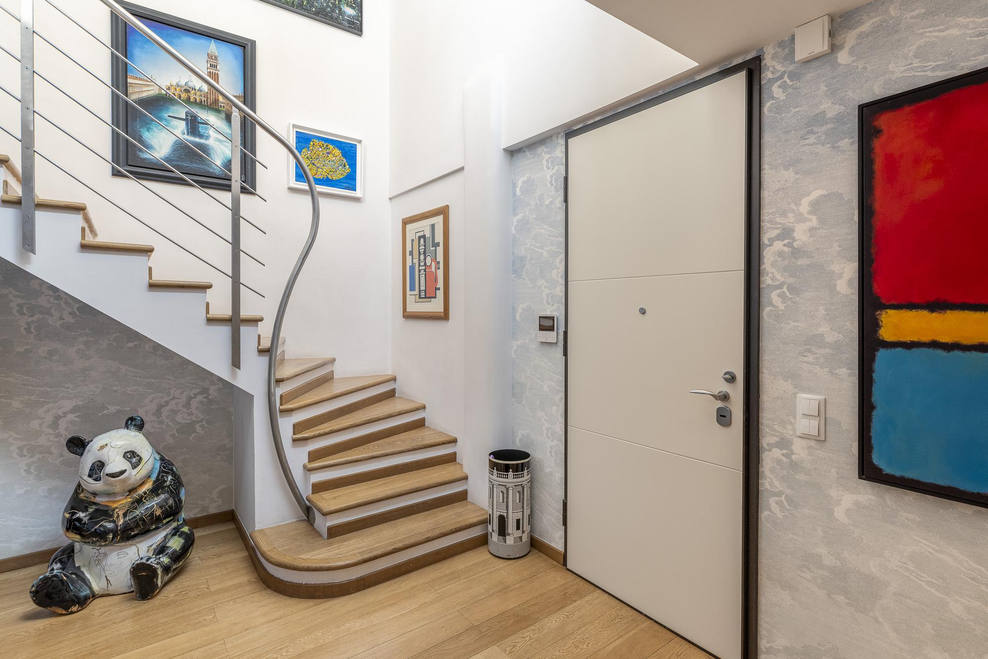 Au 7ème étage, vous êtes accueillis par une entrée élégante qui mène à un double séjour-salle à manger lumineux, offrant une vue panoramique sur Monaco et la mer. La cuisine, spacieuse et entièrement équipée, s'avère parfaite pour les repas en famille. Ce niveau comprend également trois chambres confortables, chacune avec sa propre salle de bains, ainsi que des dressings et un toilette pour les invités. Un grand escalier mène à l'étage supérieur.
