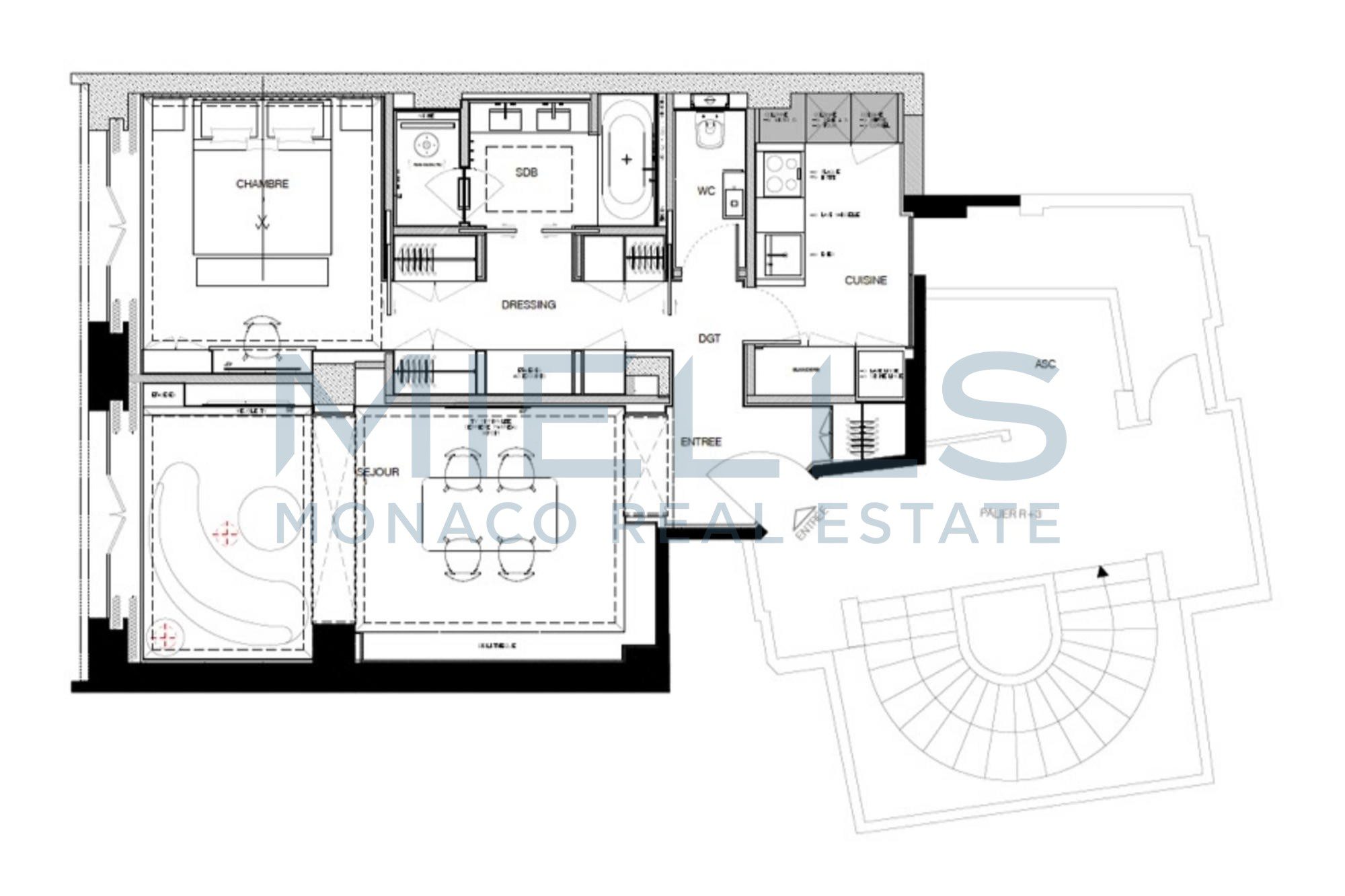 Superbe deux pièces rénové situé au coeur du quartier de Monte-Carlo, à deux pas du casino et de ses jardins.