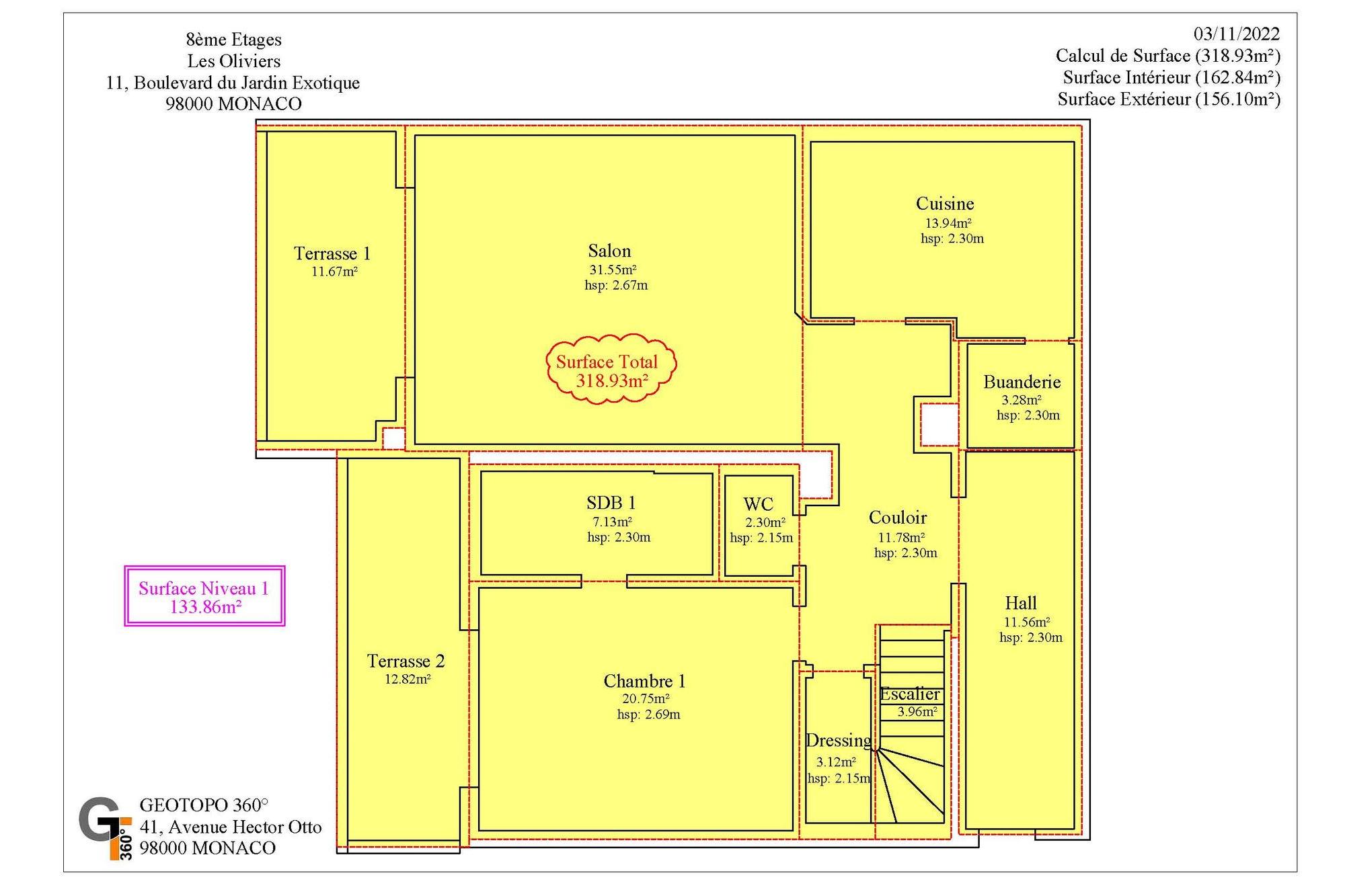 Ce beau penthouse en triplex d'une surface de 319 m2 dont 156 m2 de terrasse bénéficie de volumes généreux ainsi que d'une belle luminosité.