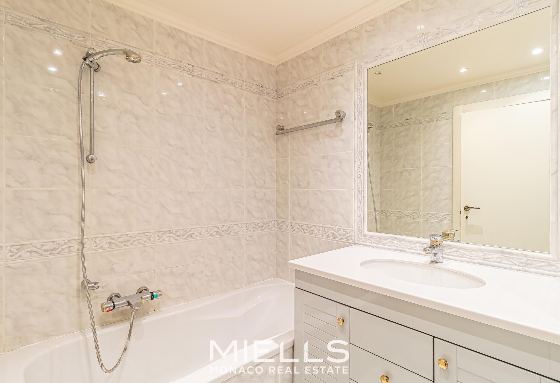Condominio moderno con portineria, situato nel quartiere del Giardino Esotico dispone di una galleria commerciale ed una piscina esterna. Spazioso appartamento di una superficie di 119 M2 + 79 M2 di terrazza con una gradevole vista sul mare e la Rocca. Una cantina e 2 parcheggi completano la proprietà. Con un ottimo potenziale di ristrutturazione, questo appartamento è composto da un: un ingresso, un doppio soggiorno, una cucina separata arredata, un bagno ospiti, 2 camere ciascuna con il suo bagno, una grande terrazza circolare.