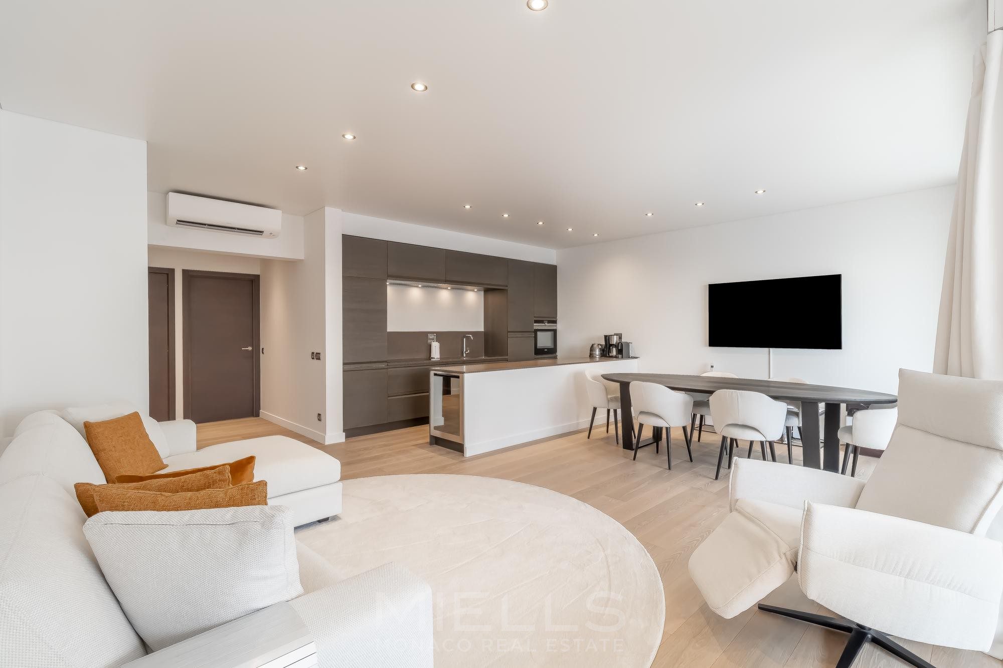 In una residenza con portineria, vicino a tutti i servizi, bellissimo appartamento di 4 locali ristrutturato e climatizzato, completamente arredato, ideale per una famiglia. Composizione: ingresso, soggiorno con cucina completamente attrezzata, terrazza, tre camere da letto, un bagno, una doccia, terrasse.