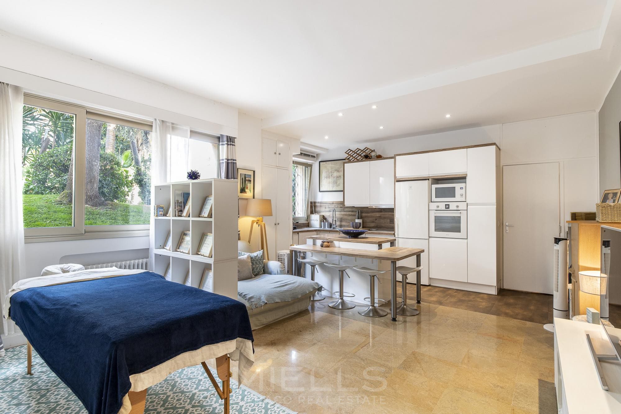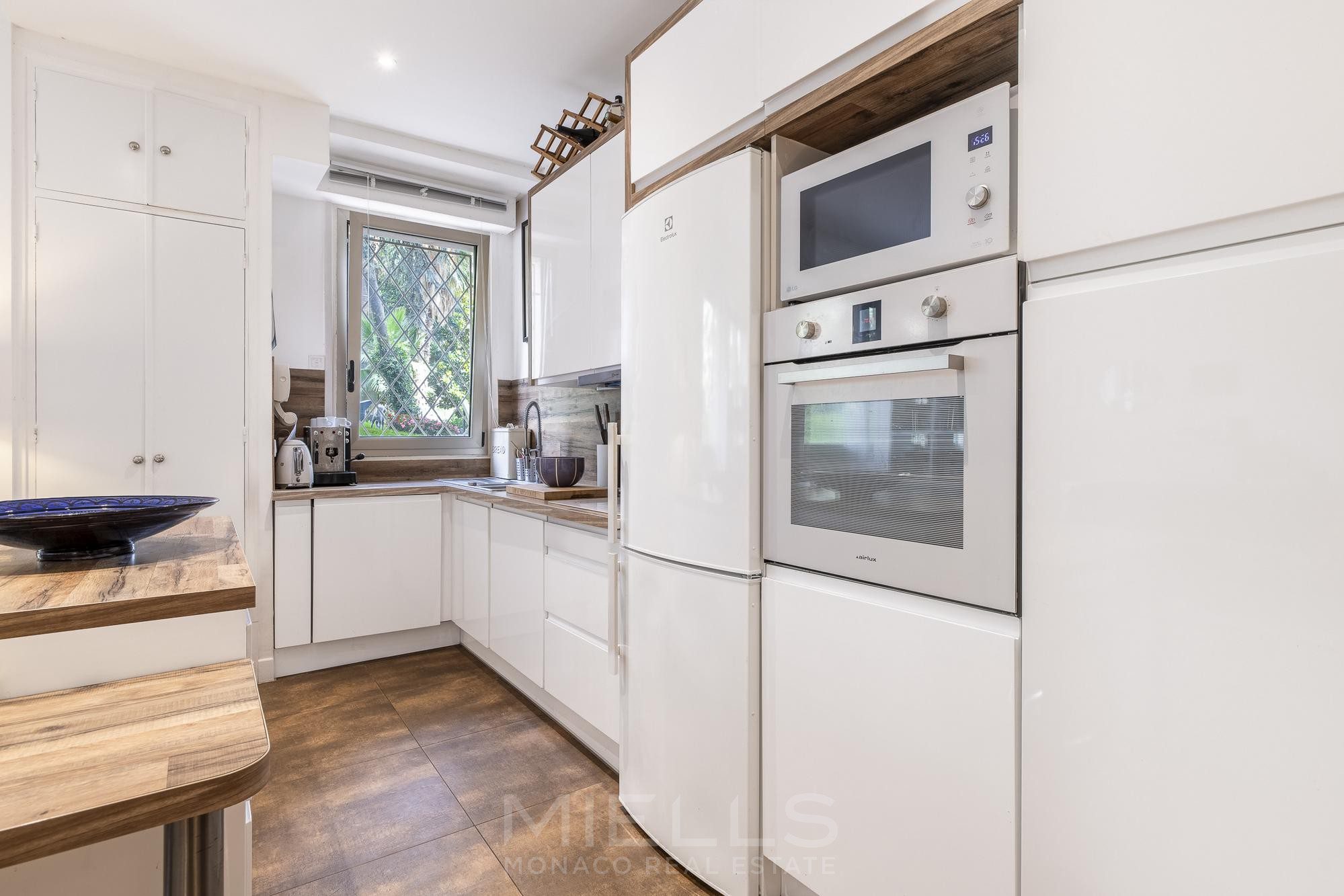 Appartamento completamente ristrutturato, tranquillo e piacevole, situato in una residenza con servizio di portineria e parco alberato, nel cuore del quartiere di Monte-Carlo. Uso misto.