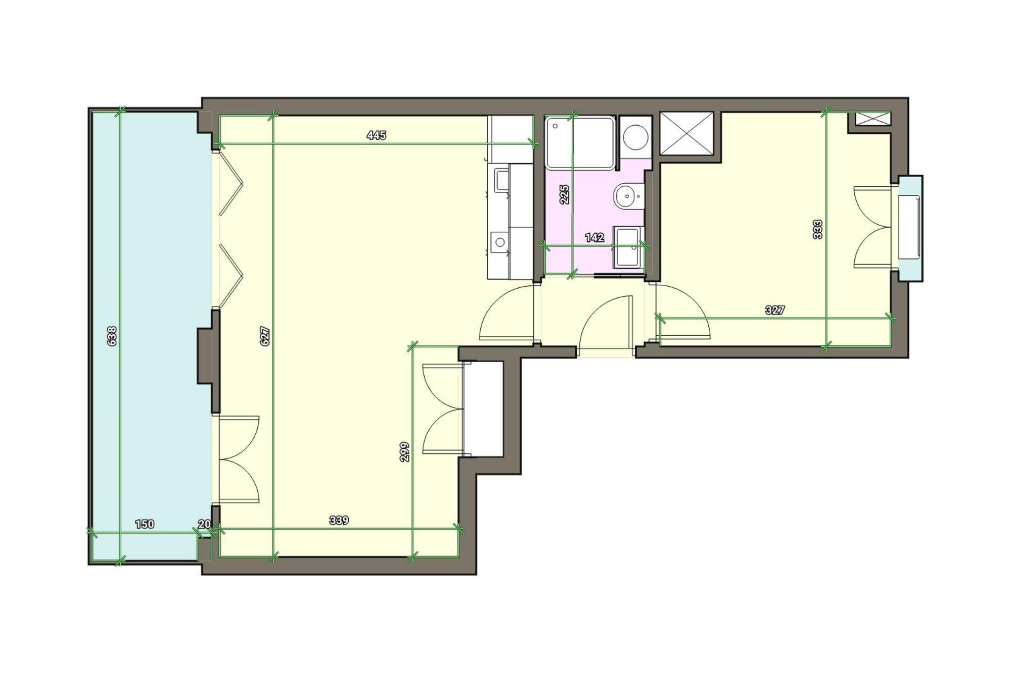 È composto da un ingresso, un ampio soggiorno che si apre su una terrazza e una camera da letto con bagno.