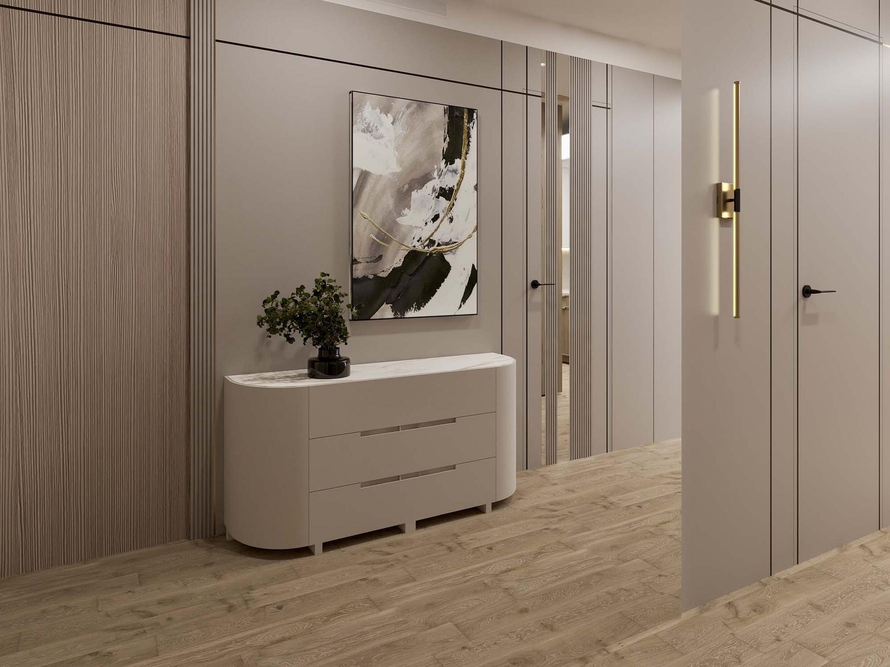 All’ingresso, un ampio corridoio conduce ad un spazioso soggiorno luminoso, che si apre su una terrazza di 11,7 m² con vista panoramica sul mare. Una cucina indipendente, moderna e completamente attrezzata, completa armoniosamente questo accogliente spazio living.