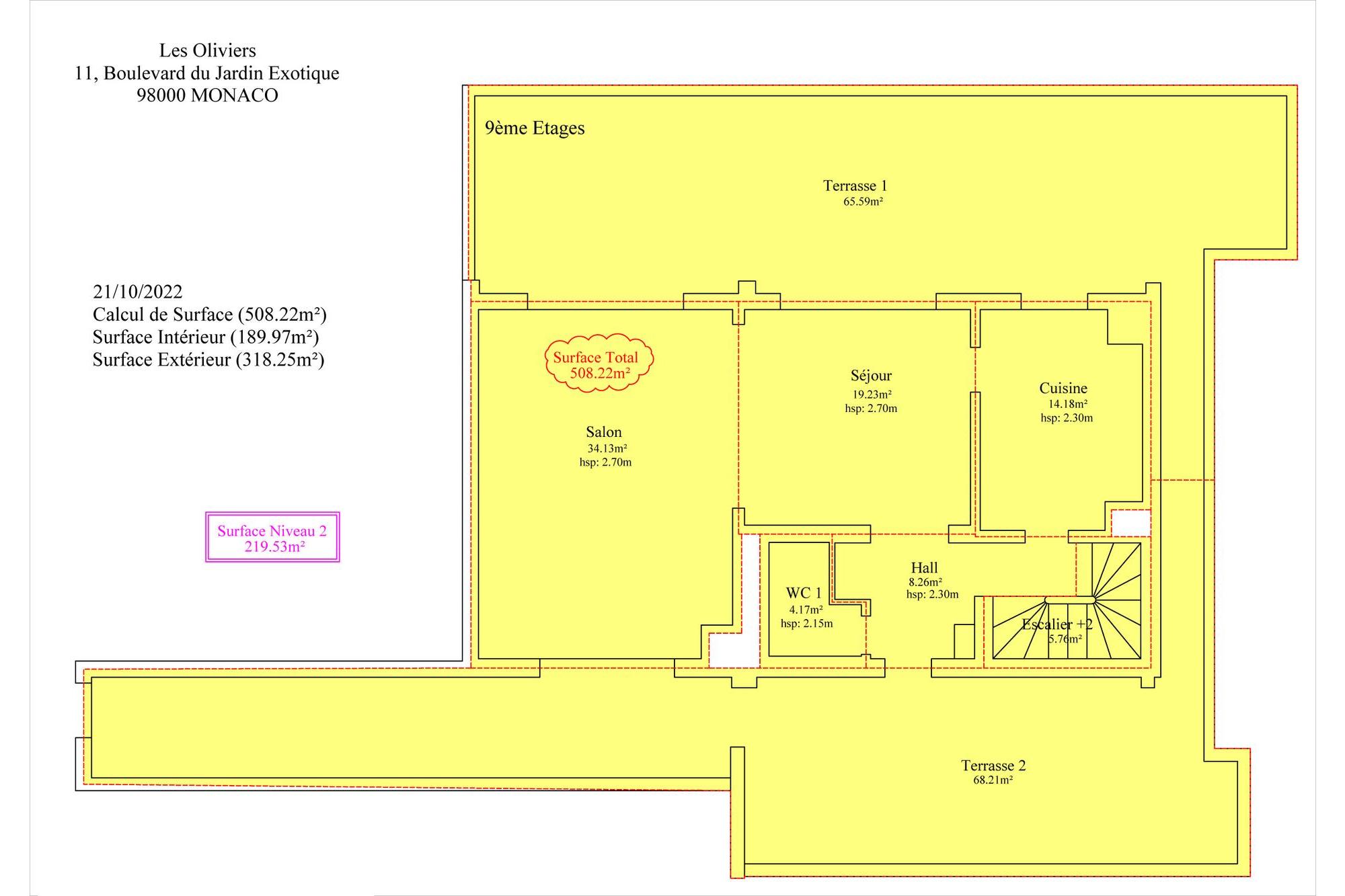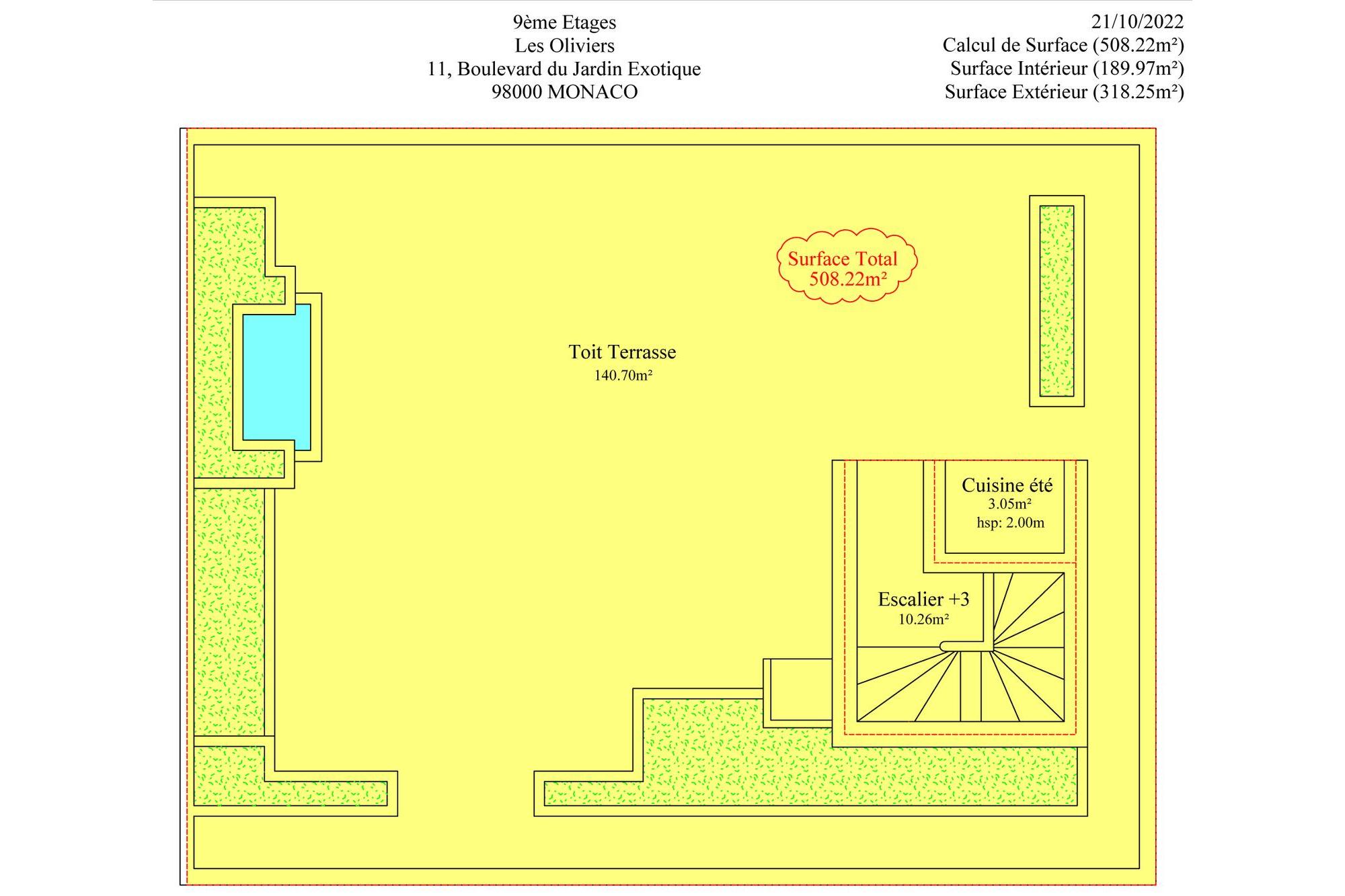 Distribuito su 3 piani, questo bellissimo triplex di 508 m², di cui 318 m² di terrazzo, è situato nel quartiere del Giardino Esotico, all'interno di un edificio con servizio di portineria, con accesso diretto al porto (tramite ascensore pubblico).