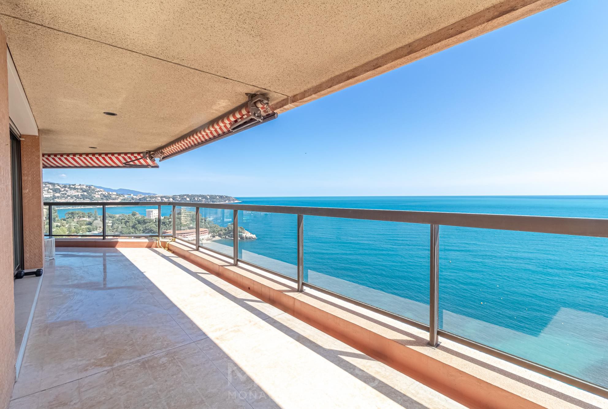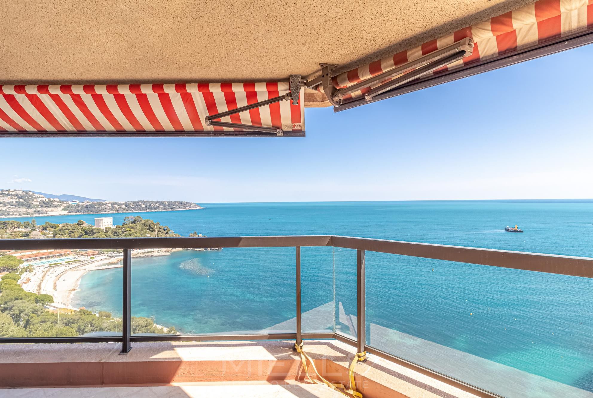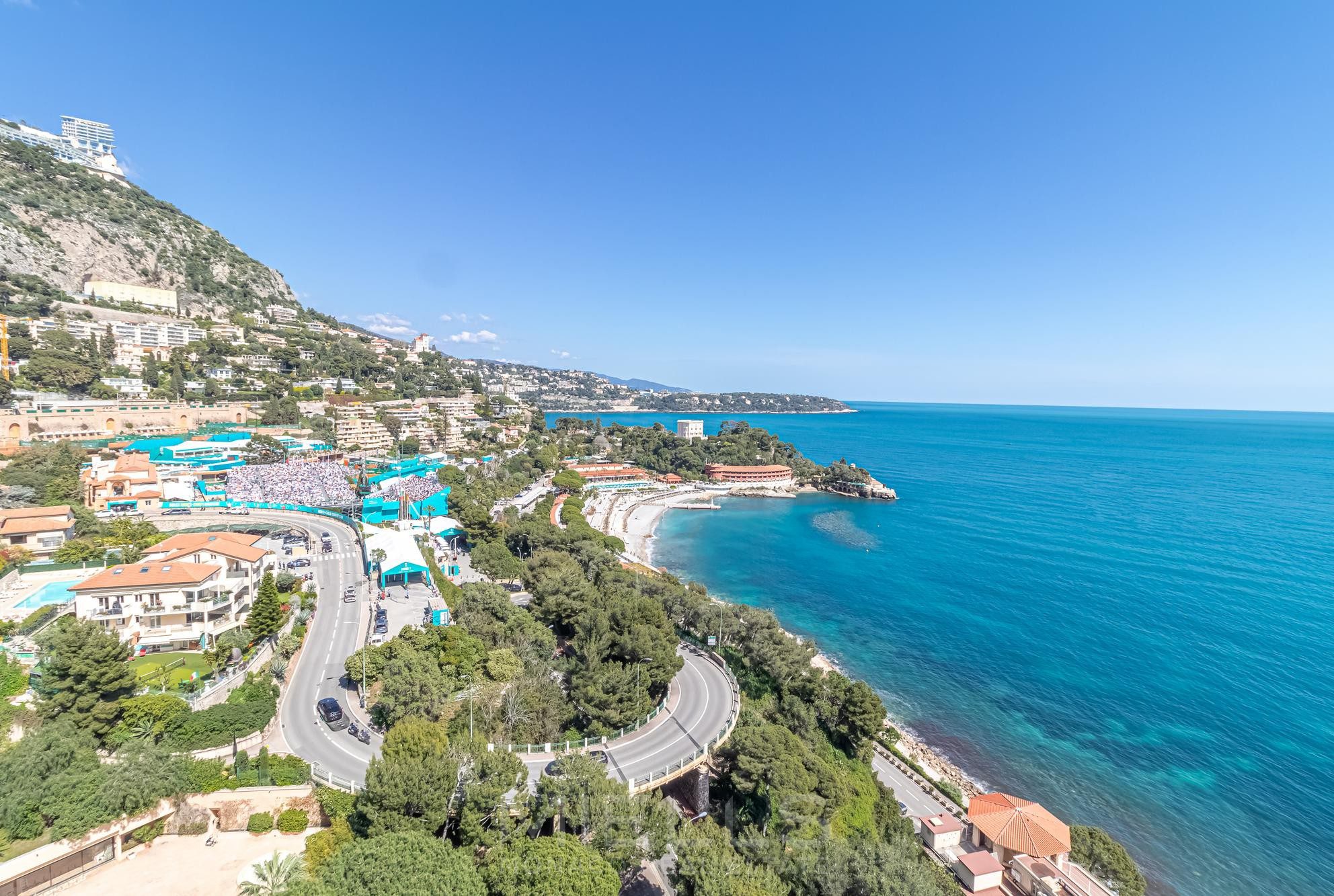 This fully renovated apartment is situated on a high floor, providing excellent natural light complemented by breathtaking views of the Mediterranean Sea and Cap Martin from every singe room. Each window is just like a stunning postcard!