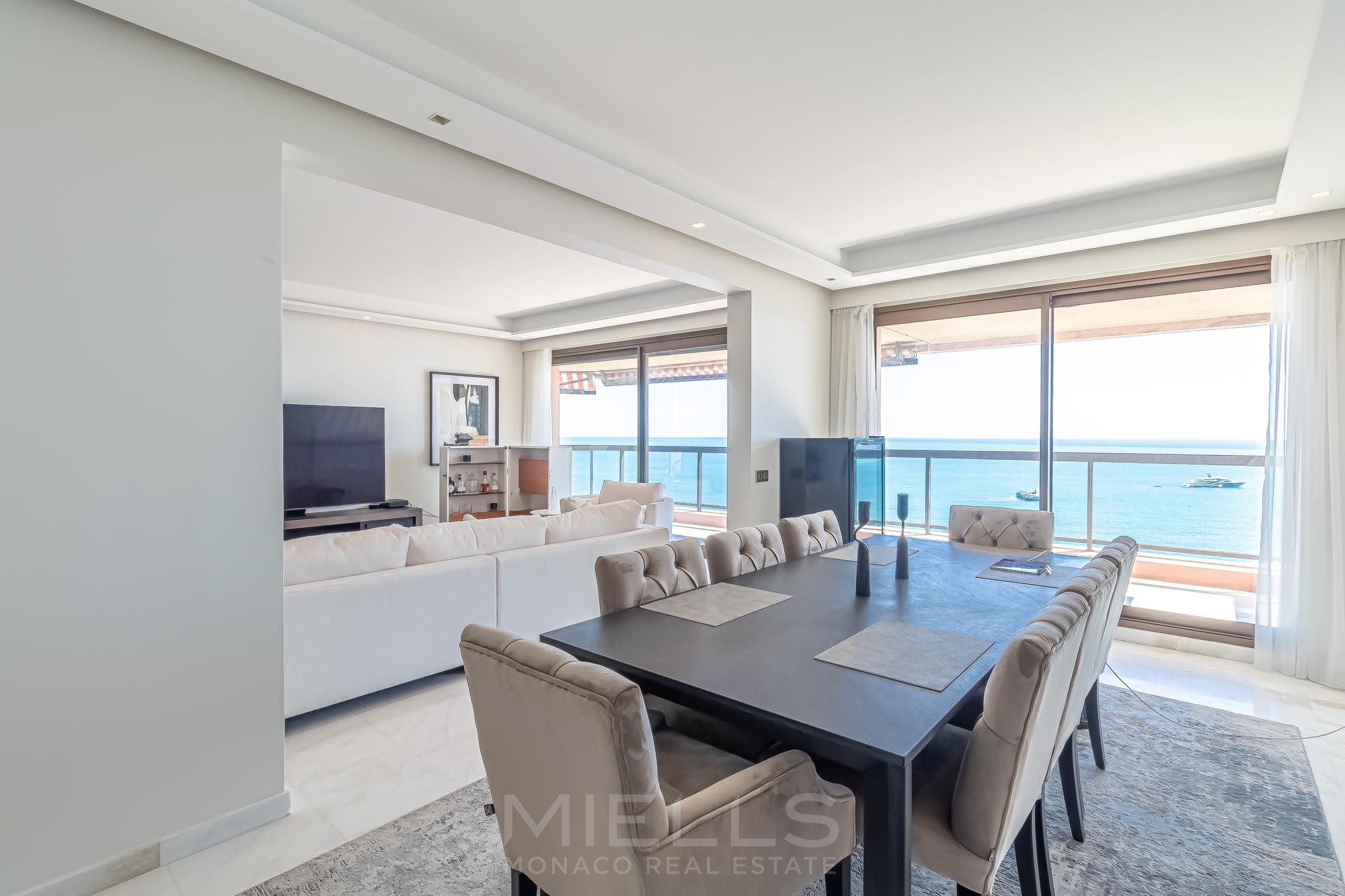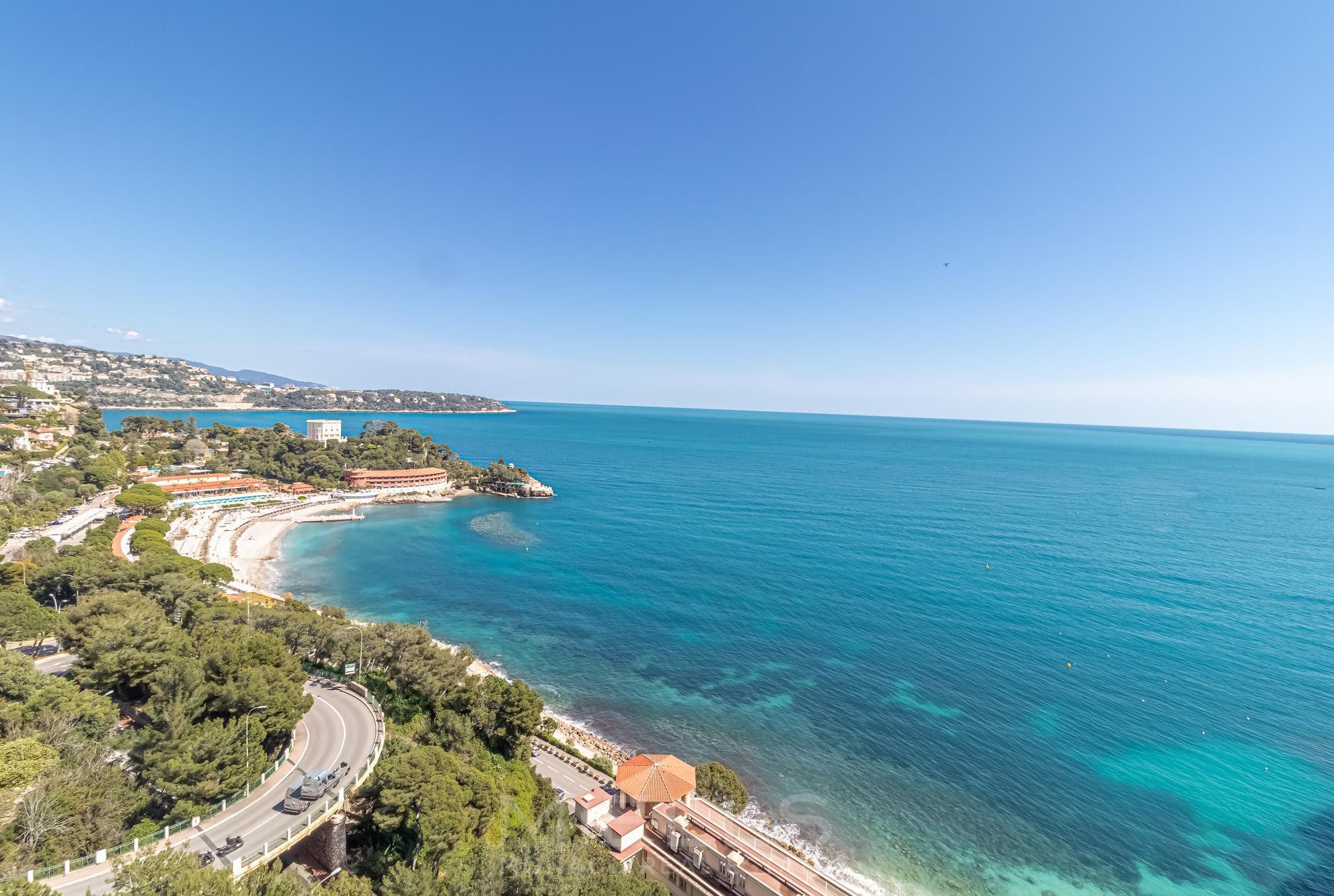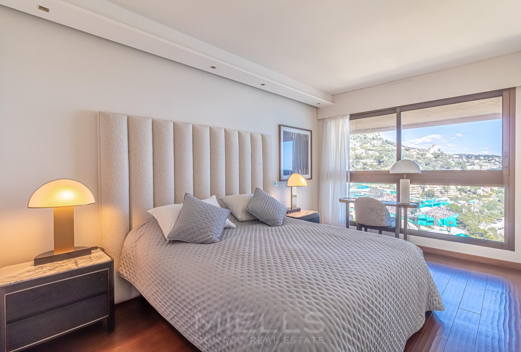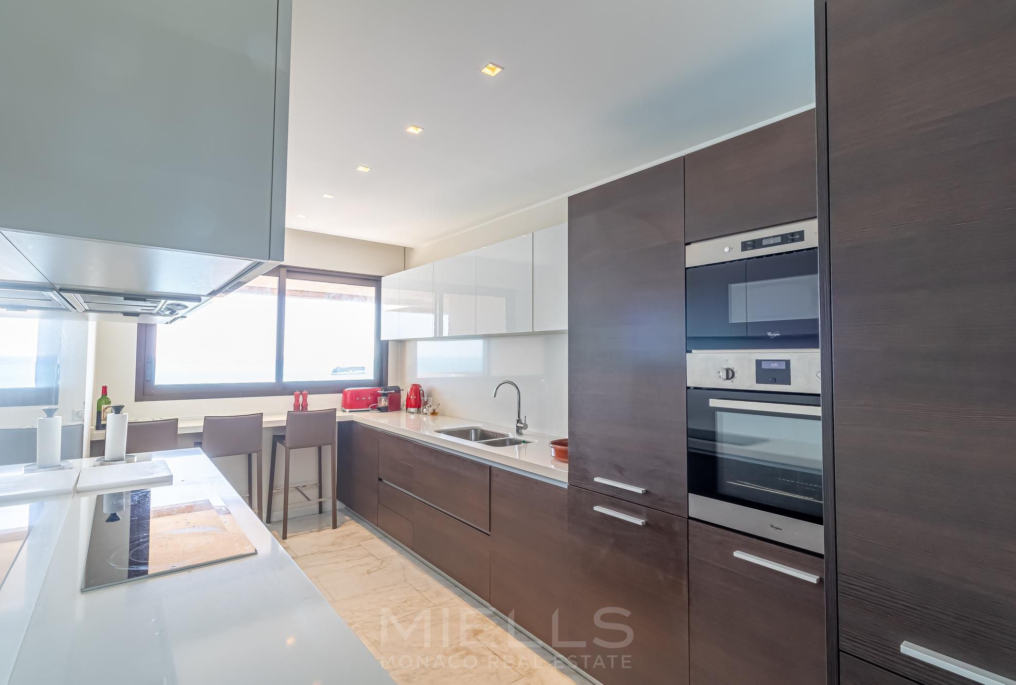 This fully renovated apartment is situated on a high floor, providing excellent natural light complemented by breathtaking views of the Mediterranean Sea and Cap Martin from every singe room. Each window is just like a stunning postcard!