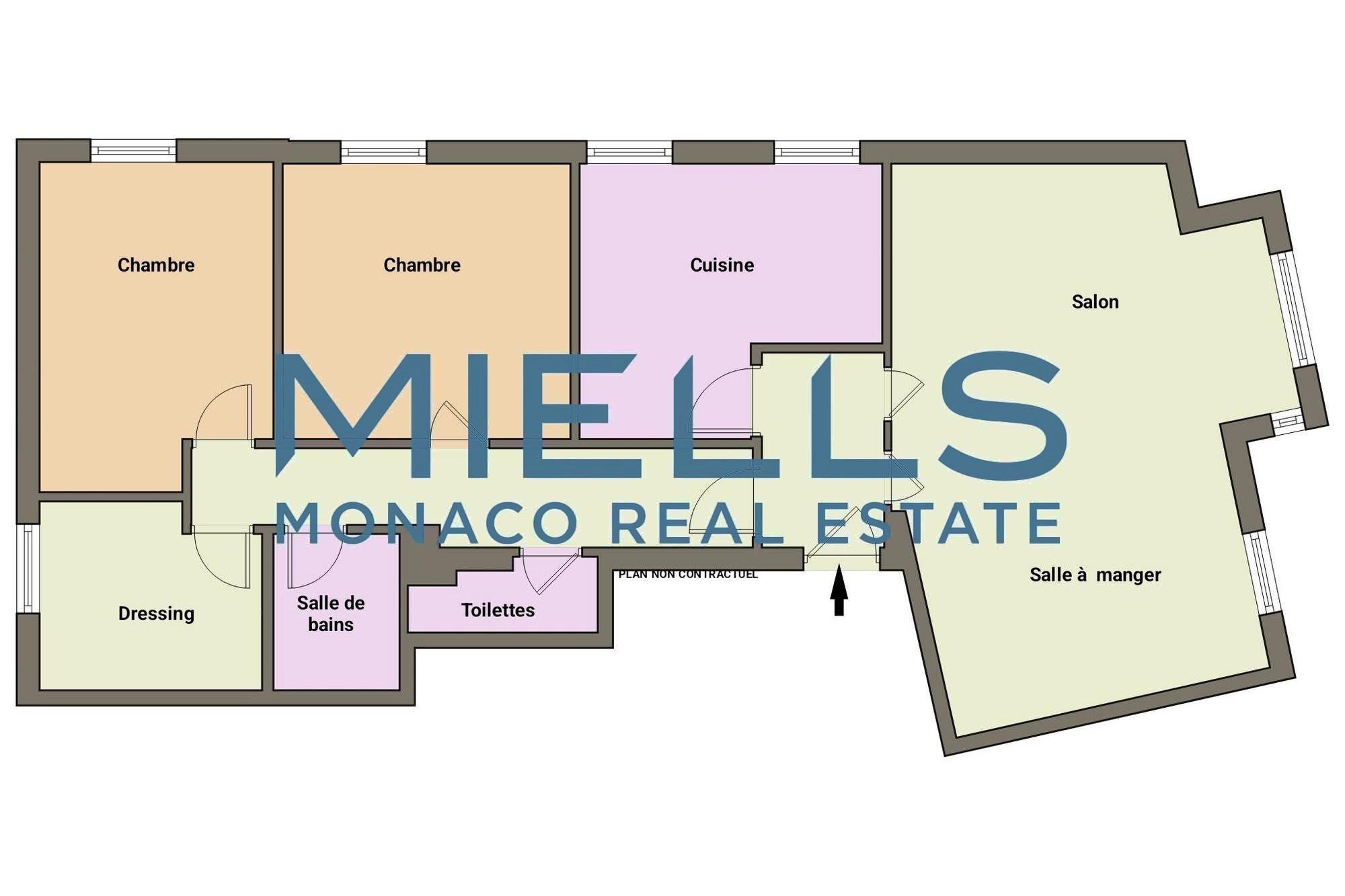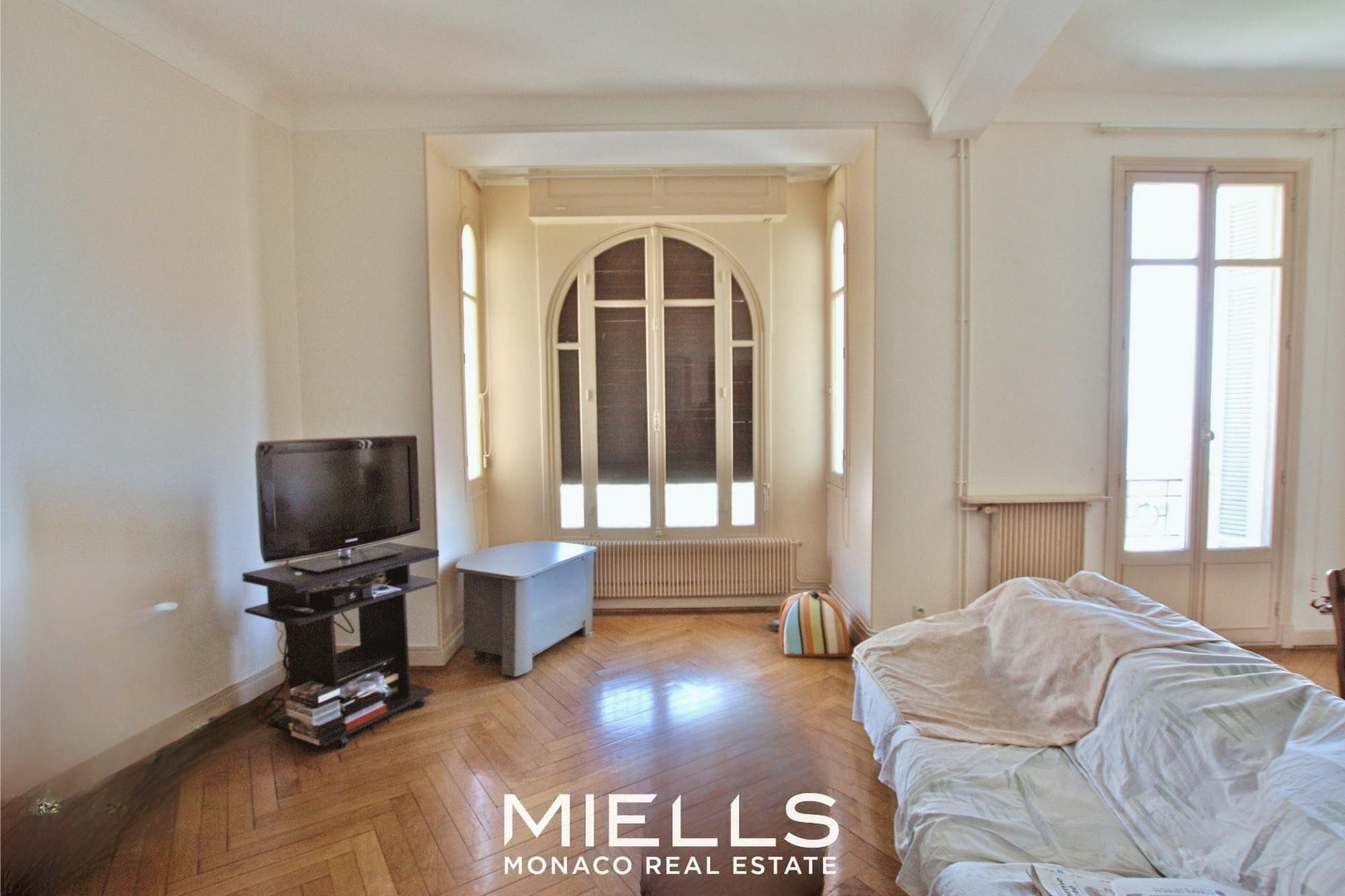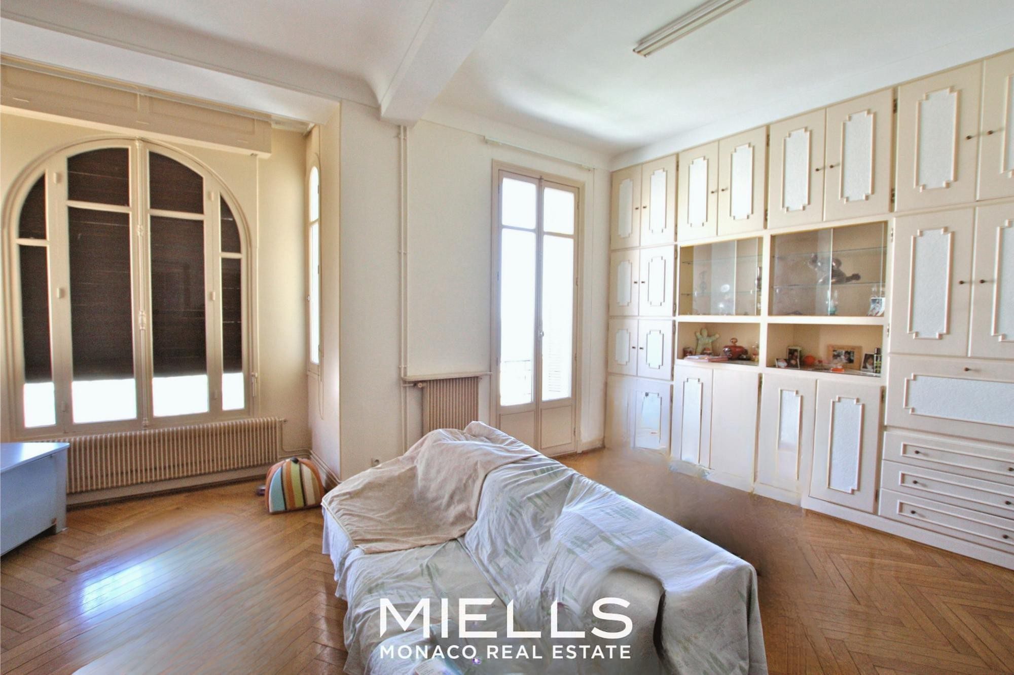 This spacious 2-bedroom apartment of 115 sqm is located in a charming bourgeois building with an elevator, in the Moneghetti district, close to all city amenities.