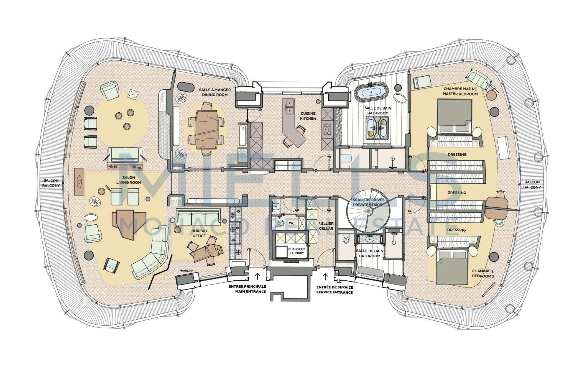 This magnificent duplex apartment offers a privileged living environment in the heart of Monaco’s Golden square.