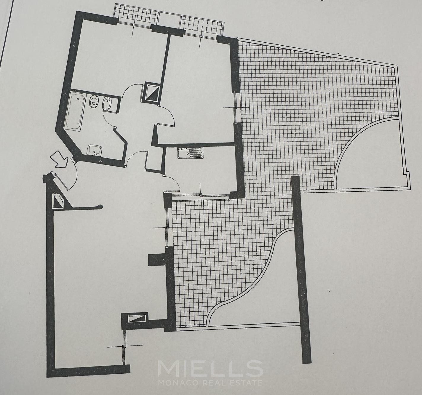 Rare 2-bedroom apartment located in a tranquil, high-end residence. The apartment consists of a living room, a large double terrace with a pergola, perfect for private outdoor dinners or working outside, 2 bedrooms with ample storage, a bathroom and a separate WC.