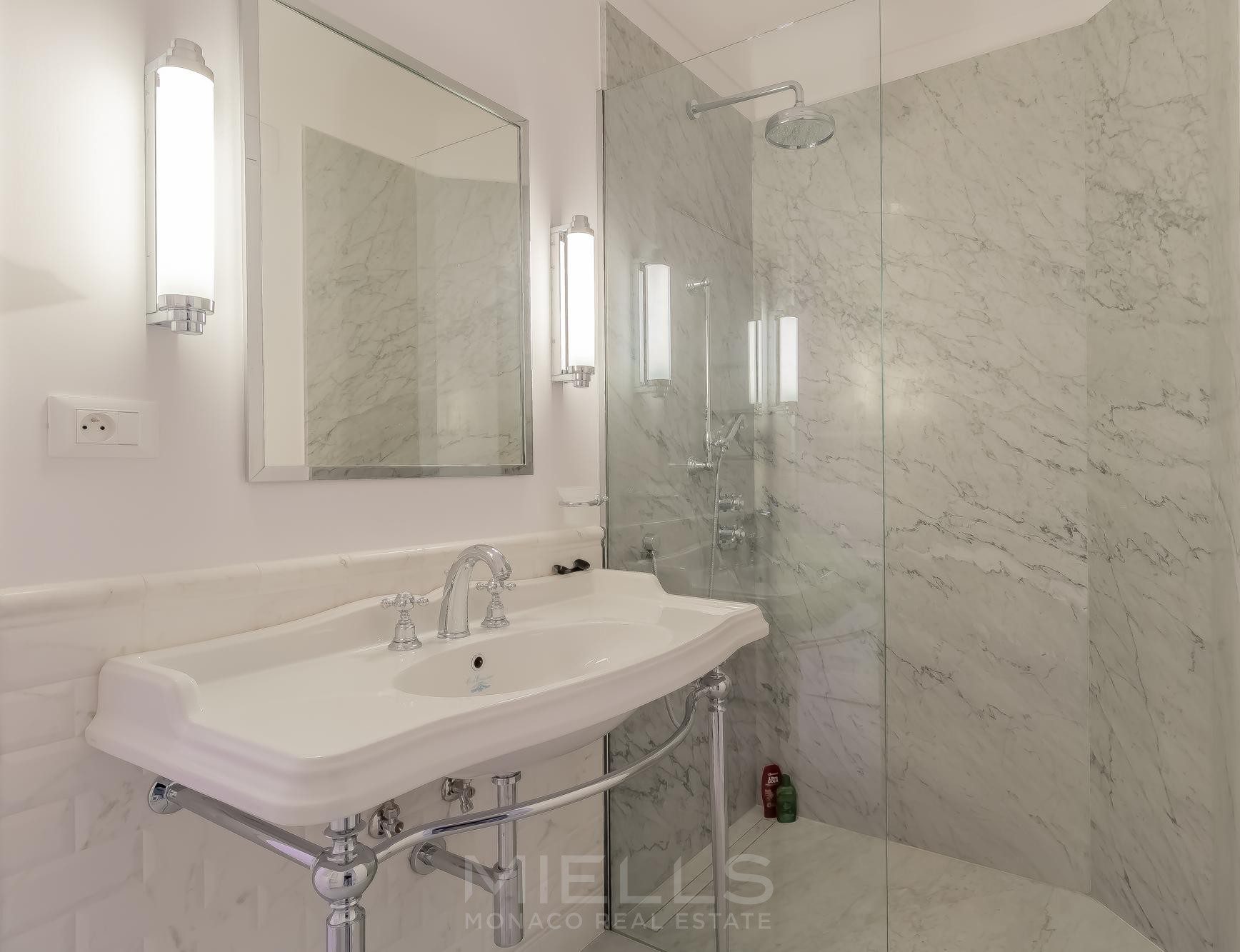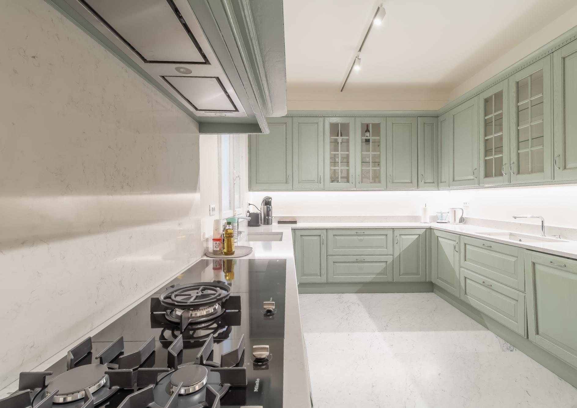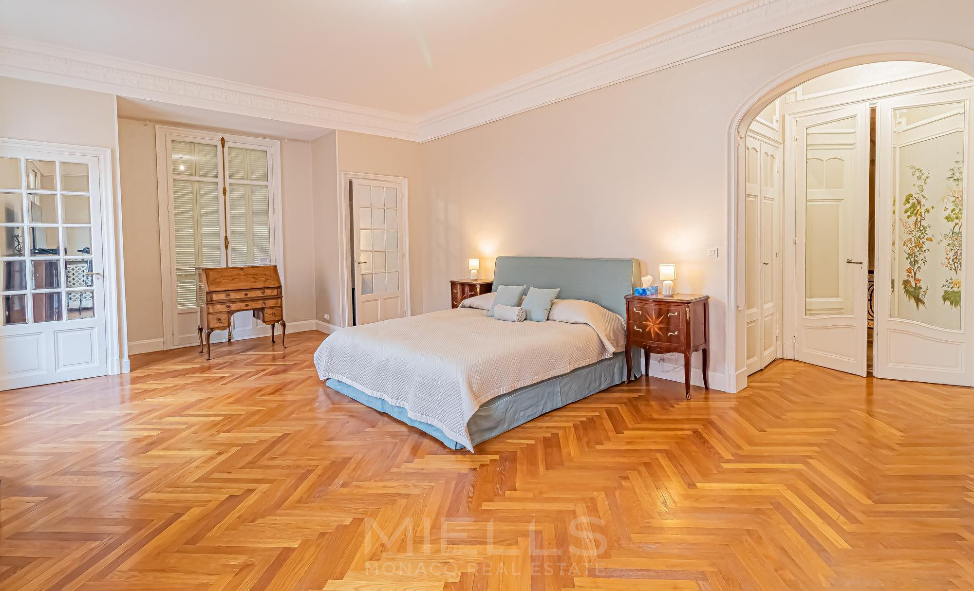 A first staircase leads down to the lower ground floor, where you’ll find a generous hall, a large fully equipped kitchen, 3 double bedrooms, 3 shower rooms, a laundry room, storage and a technical room.