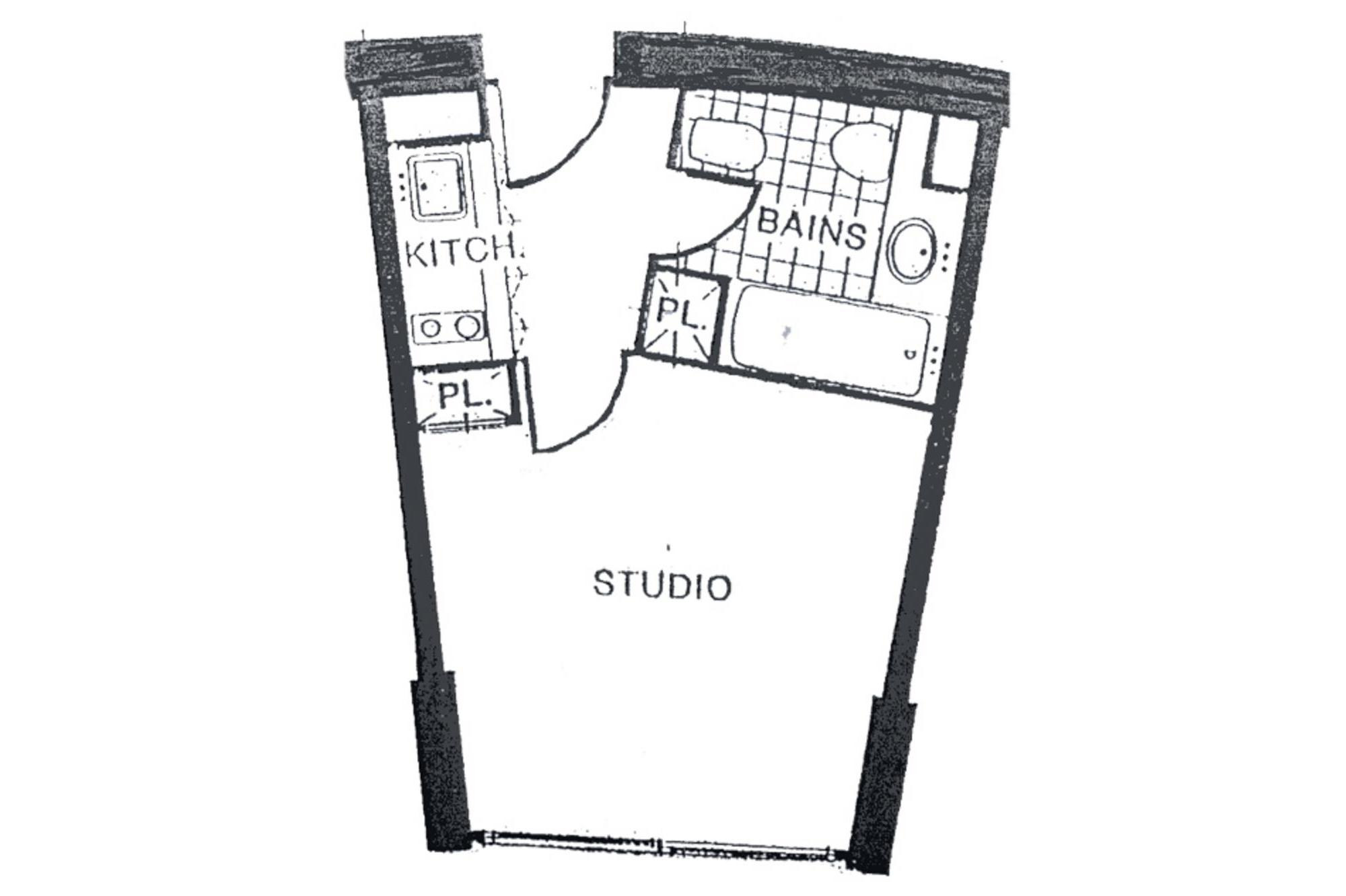The studio comprises an entrance hall, a kitchenette, a main living area and a bathroom.