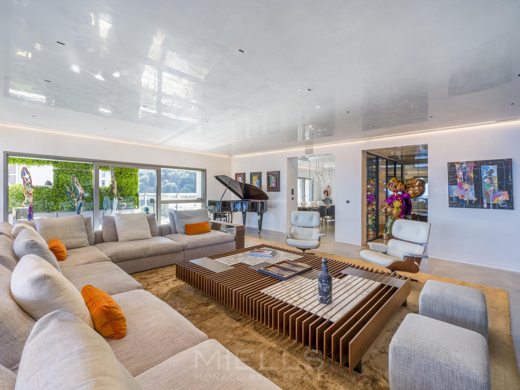 Квартира располагает просторной гостиной, выходящей на большую террасу, с которой открывается захватывающий панорамный вид на Княжество, Княжеский дворец и бесконечное синее Средиземное море.