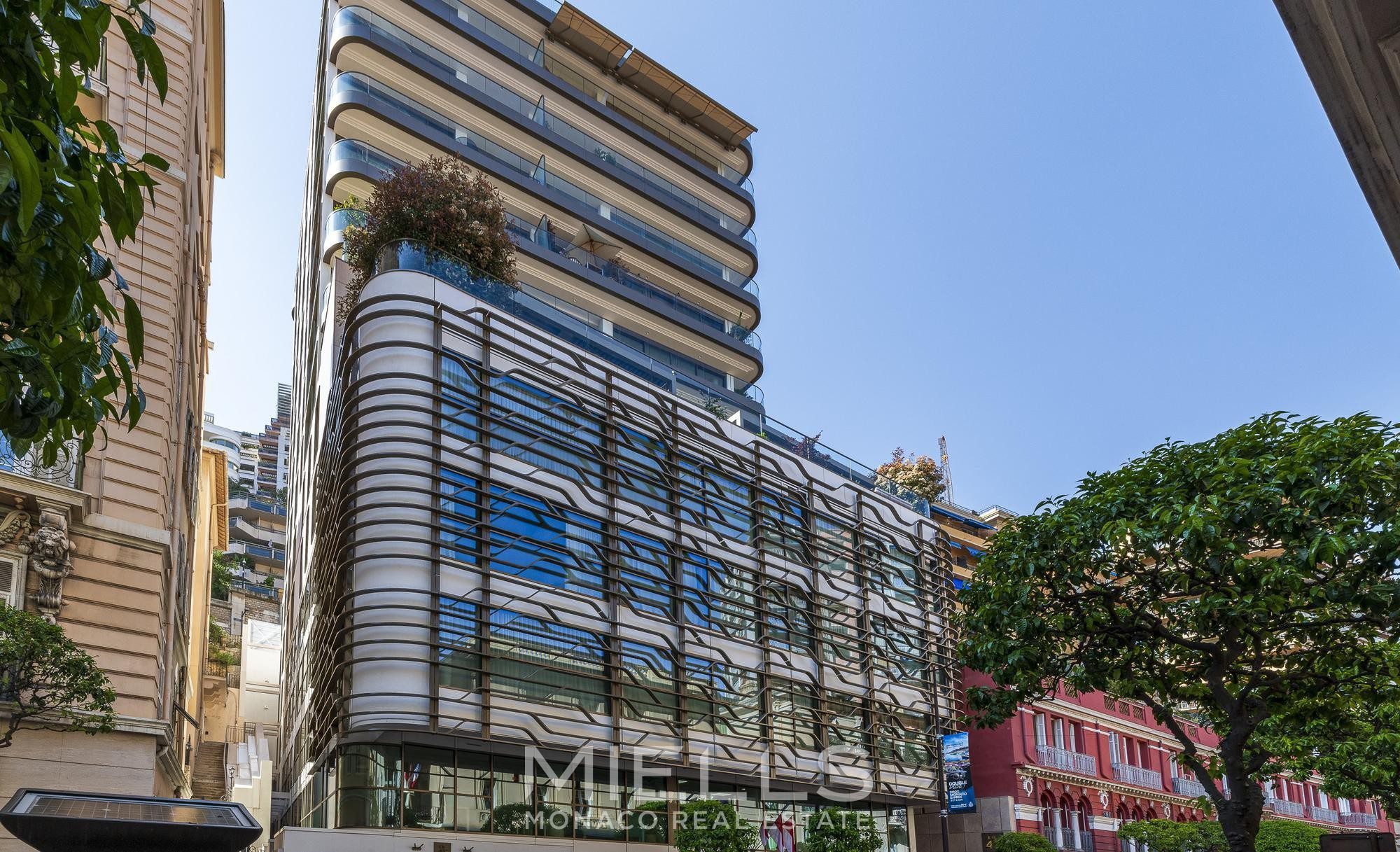 Смелая архитектура, сочетающая светлый камень, стекло и плавные линии, отражает интернациональные тенденции, сохраняя при этом сдержанную элегантность, присущую Монако. Фасад чередует панорамные окна и непрерывные балконы, наполняя внутренние пространства естественным светом.