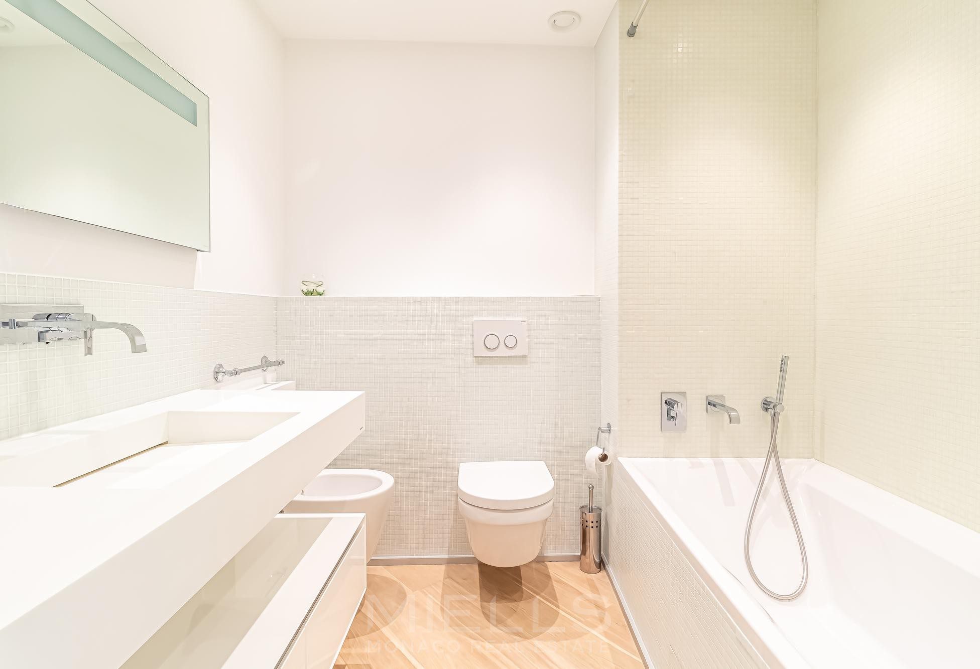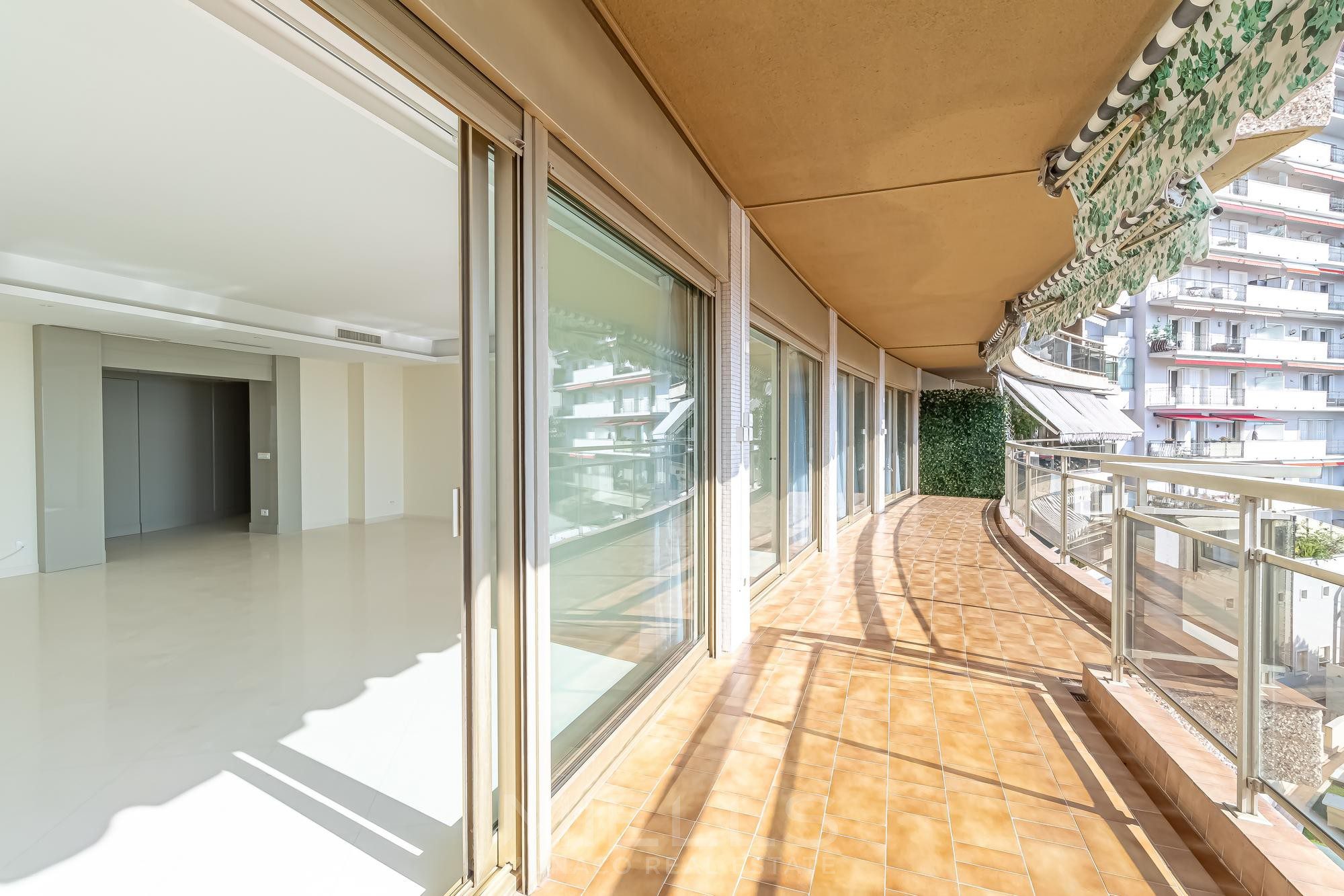 Просторная семейная квартира: терраса (46 м²), прихожая, просторная гостиная с террасой, 2 спальни - терраса с видом на море , спальня - задняя терраса, 3 ванные комнаты / туалет, оборудованная кухня - терраса