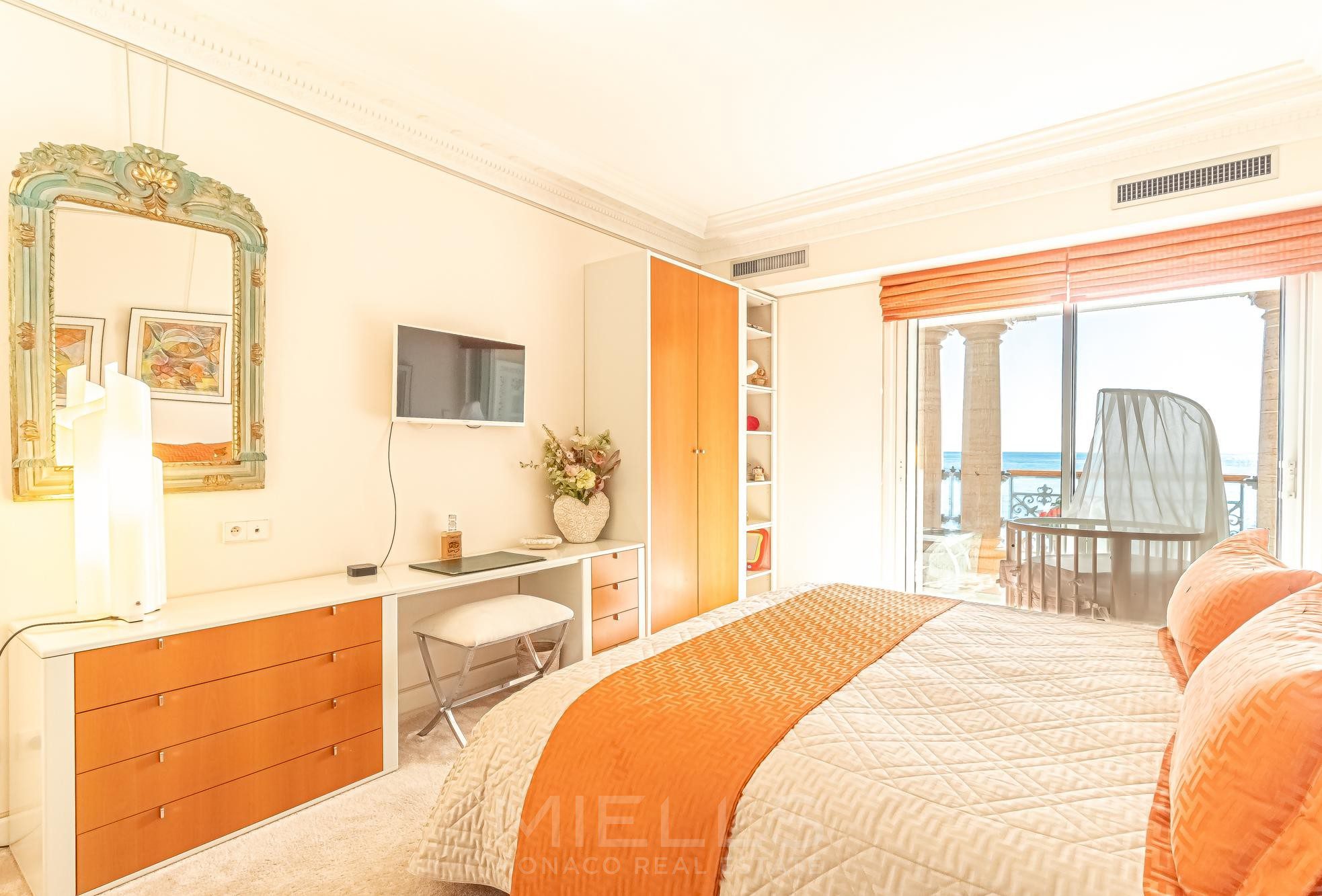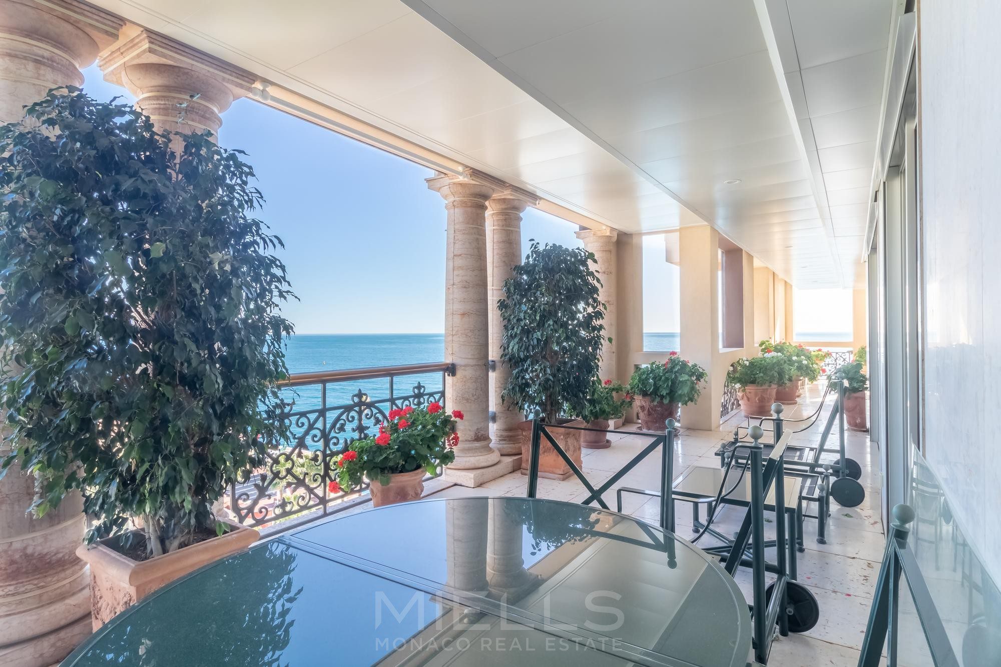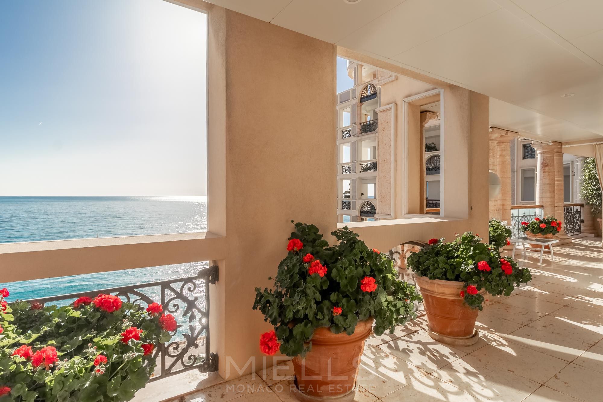 Восхитительная, просторная квартира- результат объединения двух квартир- расположена в престижном районе Монако, в здании на берегу моря, в районе Фонвьей.