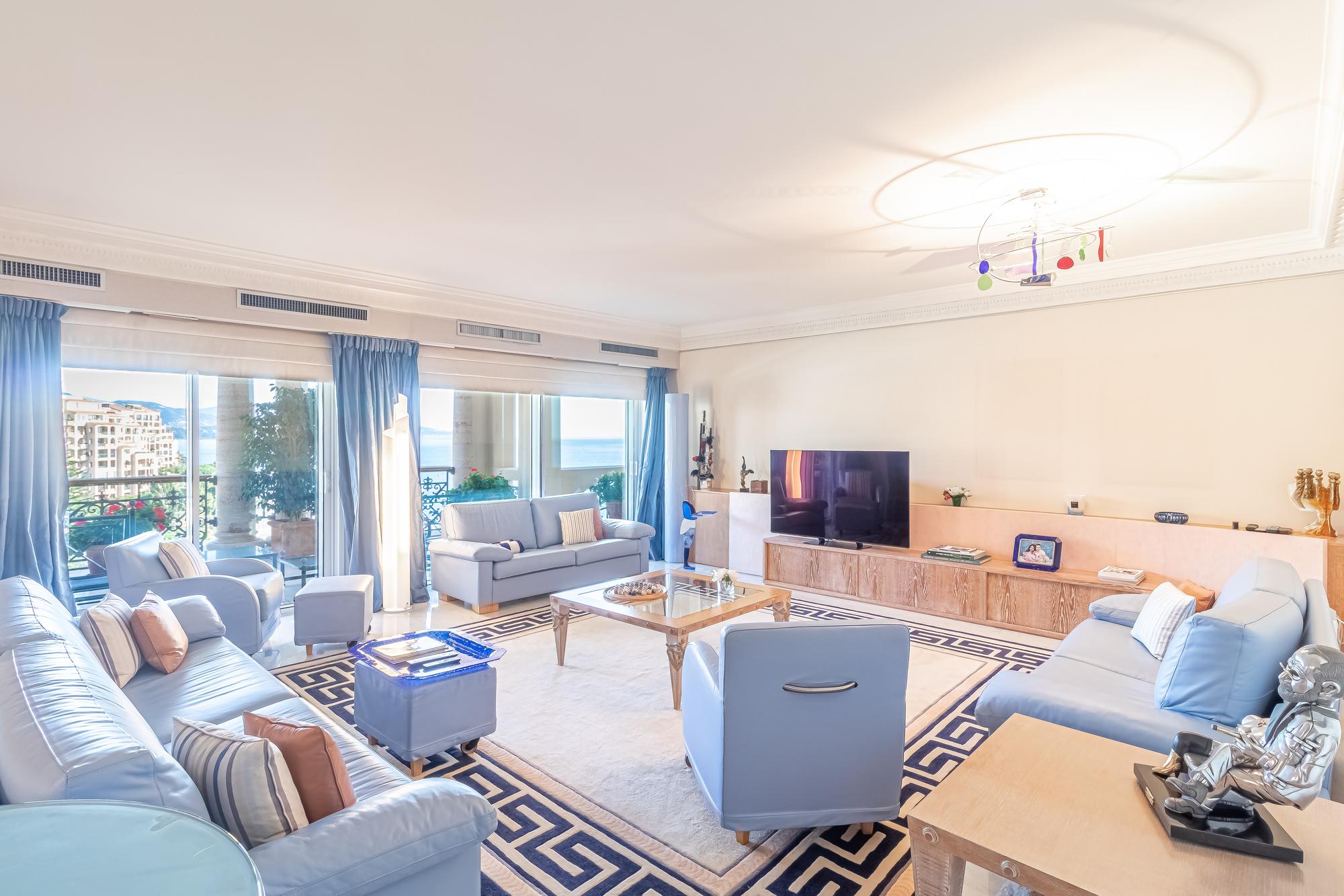 Восхитительная, просторная квартира- результат объединения двух квартир- расположена в престижном районе Монако, в здании на берегу моря, в районе Фонвьей.