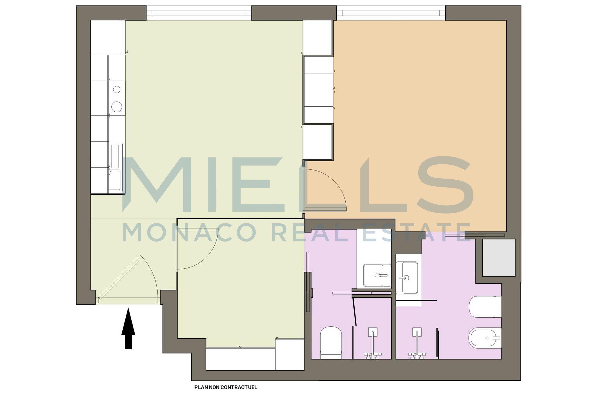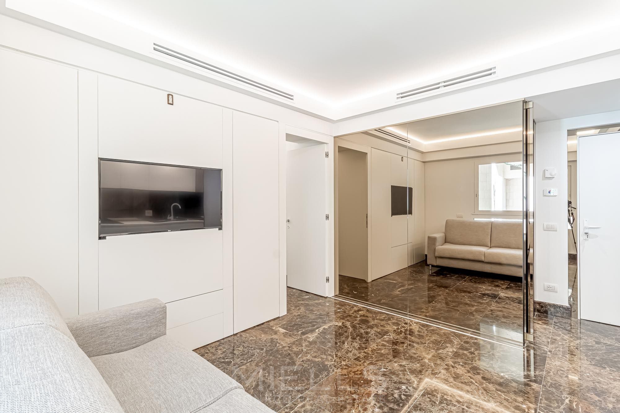 В квартире: прихожая, гостиная с американской кухней, спальня, душевая, гостевой туалет.