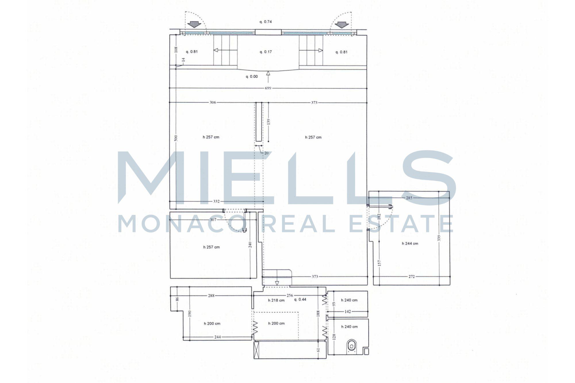 1 просторная главная комната, 2 служебных помещения, 1 прачечная, склад, 1 туалет, большой встроенный шкаф.