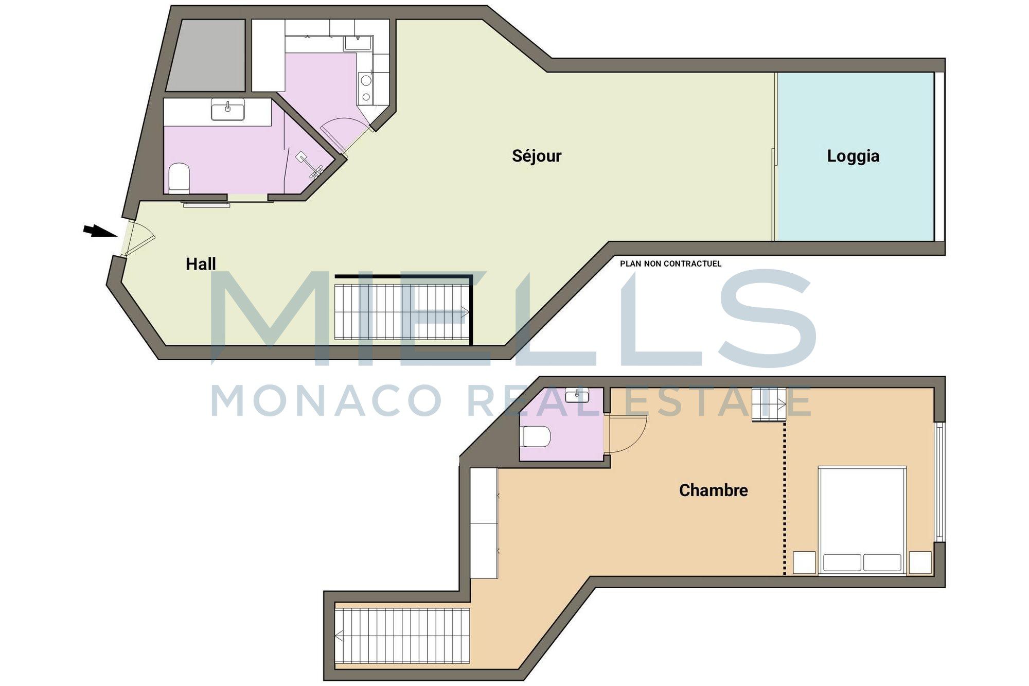 Красивый и просторный дуплекс на 100 м², с мебелью, после полного ремонта. На 1м этаже спальня со шкафами и бюро, душевая комната. Большая гостиная ведет на террасу, изолированная кухня с оборудованием.