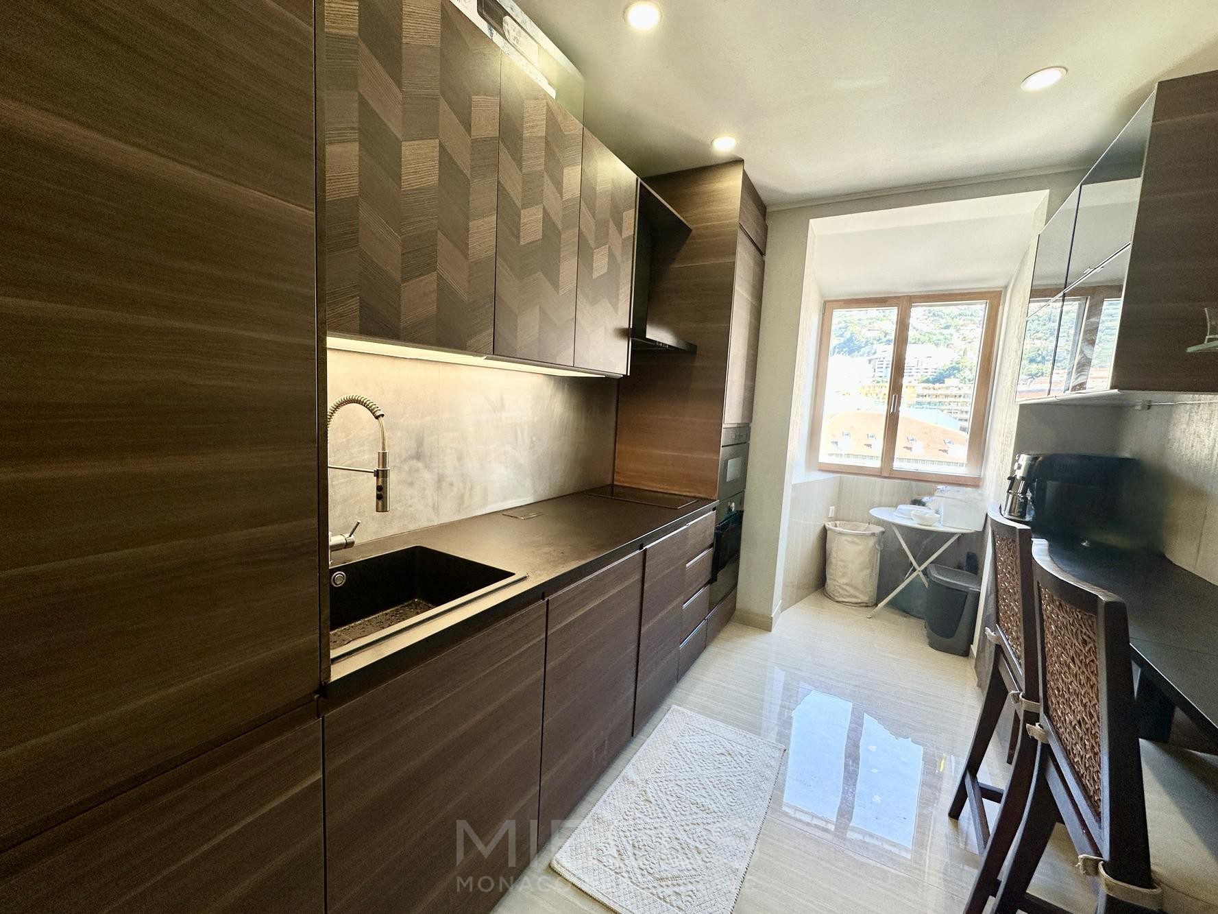 В квартире на первом уровне: красивая прихожая ведет в просторную, утопающую в свете гостиную, изолированная кухня с оборудованием, терраса с очень красивым видом на море и Скалу, главная спальня, обустроенная с высоким комфортом. На втором уровне: дополнительное жилое пространство, которое можно использовать как кабинет или салон, выходит на эксклюзивную террасу с баром и летней кухней.