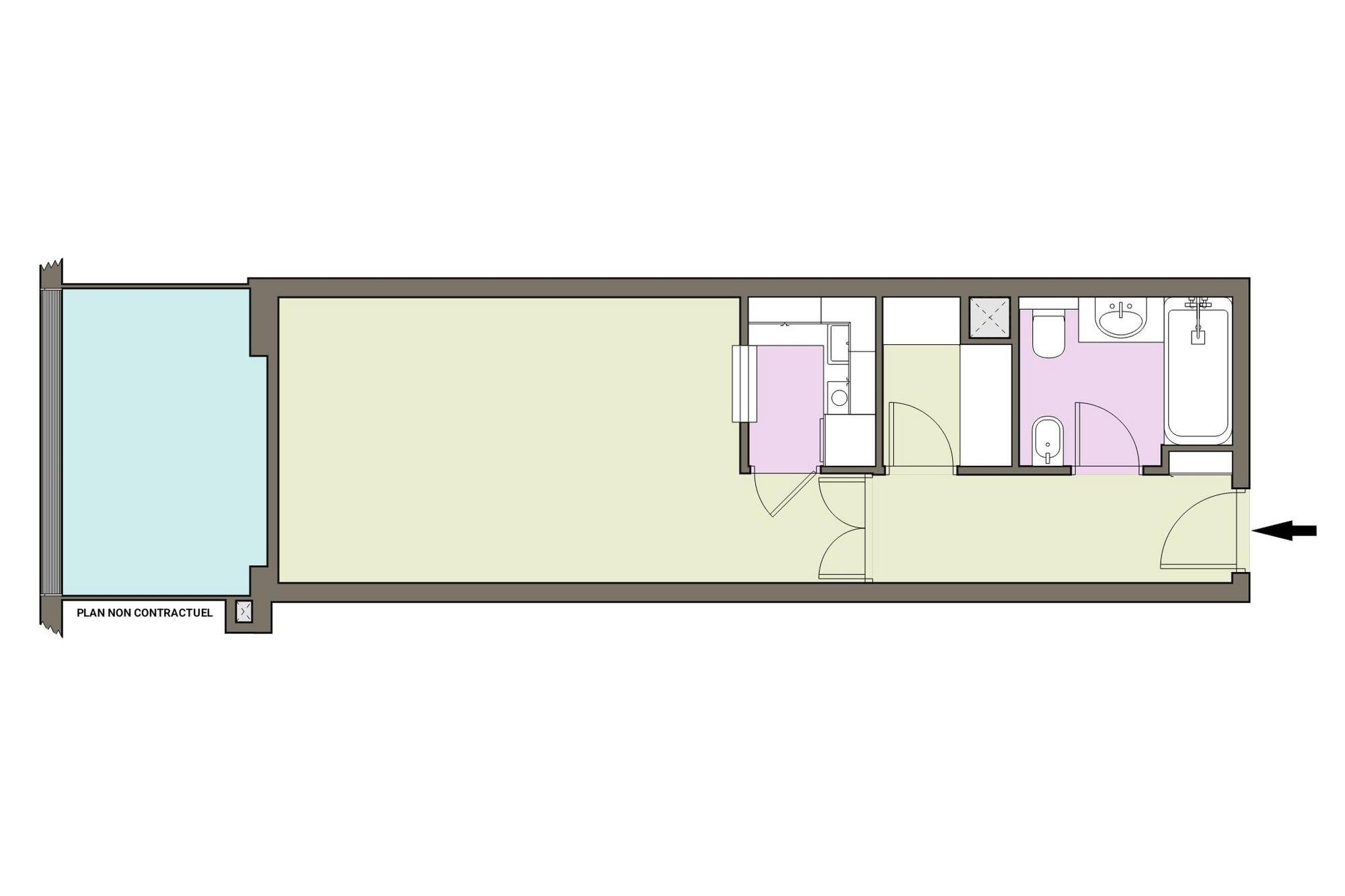 Студия на 50м2, включает 41м2 жил пл. Расположена в здании с бассейном.