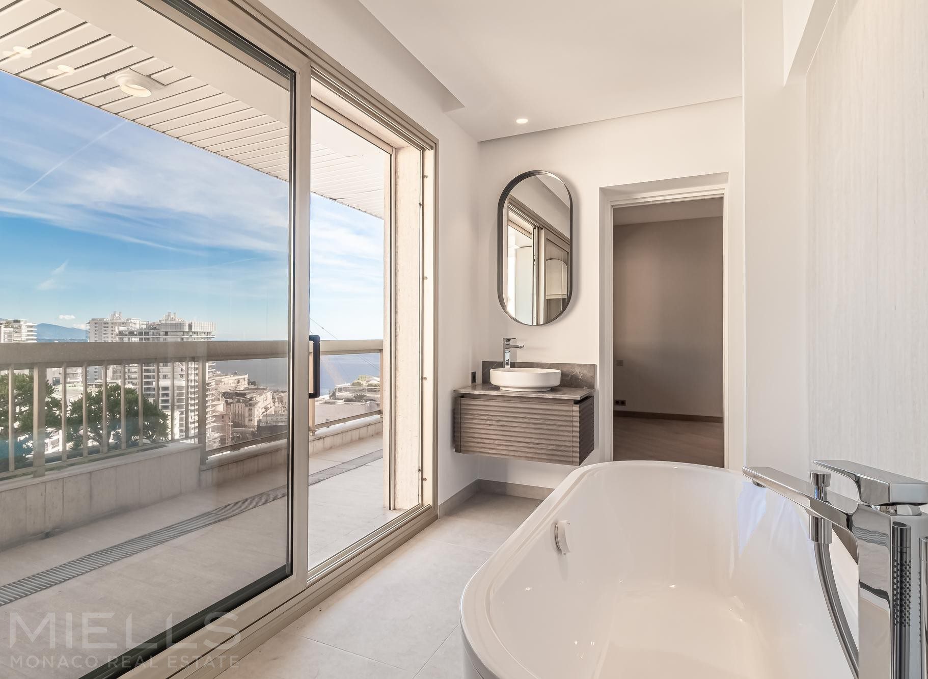 Квартира- вилла с роскошными объемами и оптимальной освещенностью предоставляет впечатляющие виды на море, Скалу, Кап Мартен, Монако и горы.
