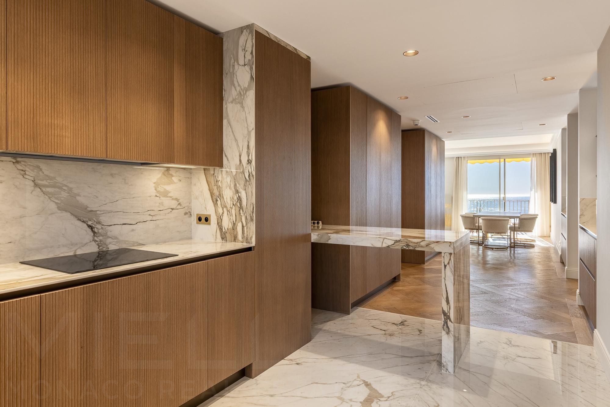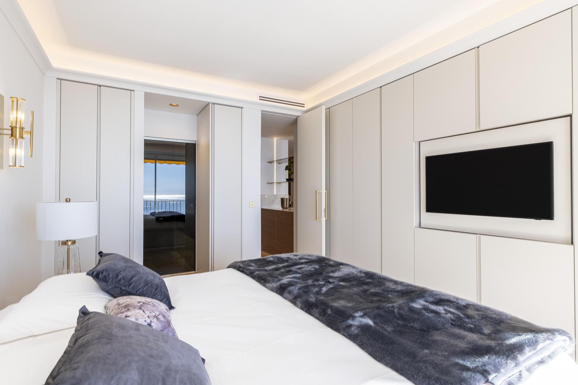 Квартира на верхнем этаже престижного здания Les Abeilles, 3 комнаты после полного ремонта с использованием роскошных материалов. Предлагает восхитительные виды и условия для жизни.