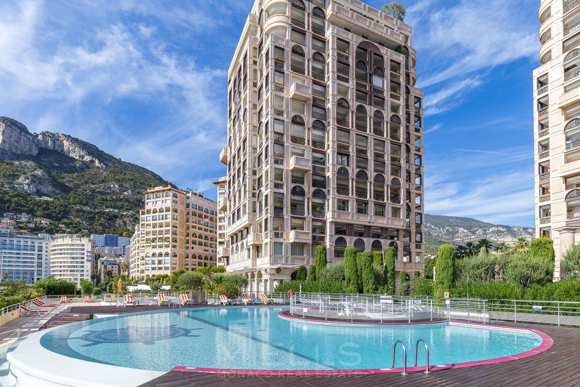 Престижная резиденция Seaside Plaza расположена напротив моря, в квартале Фонвьей. Три большие комнаты, общая площадь собственности 208 м2, включает террасу 76 м2. Отсюда открывается очень красивый вид на море и Княжество.