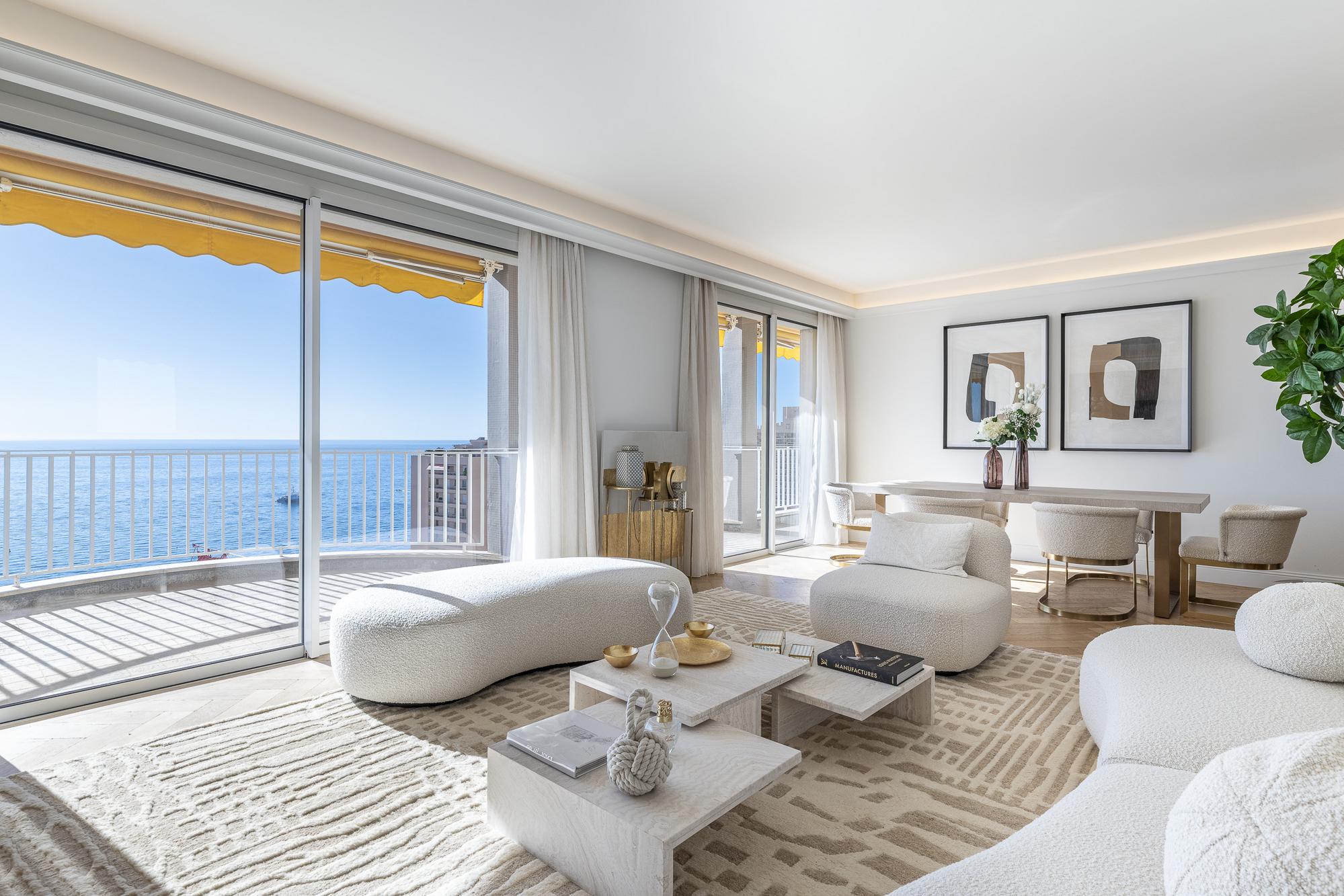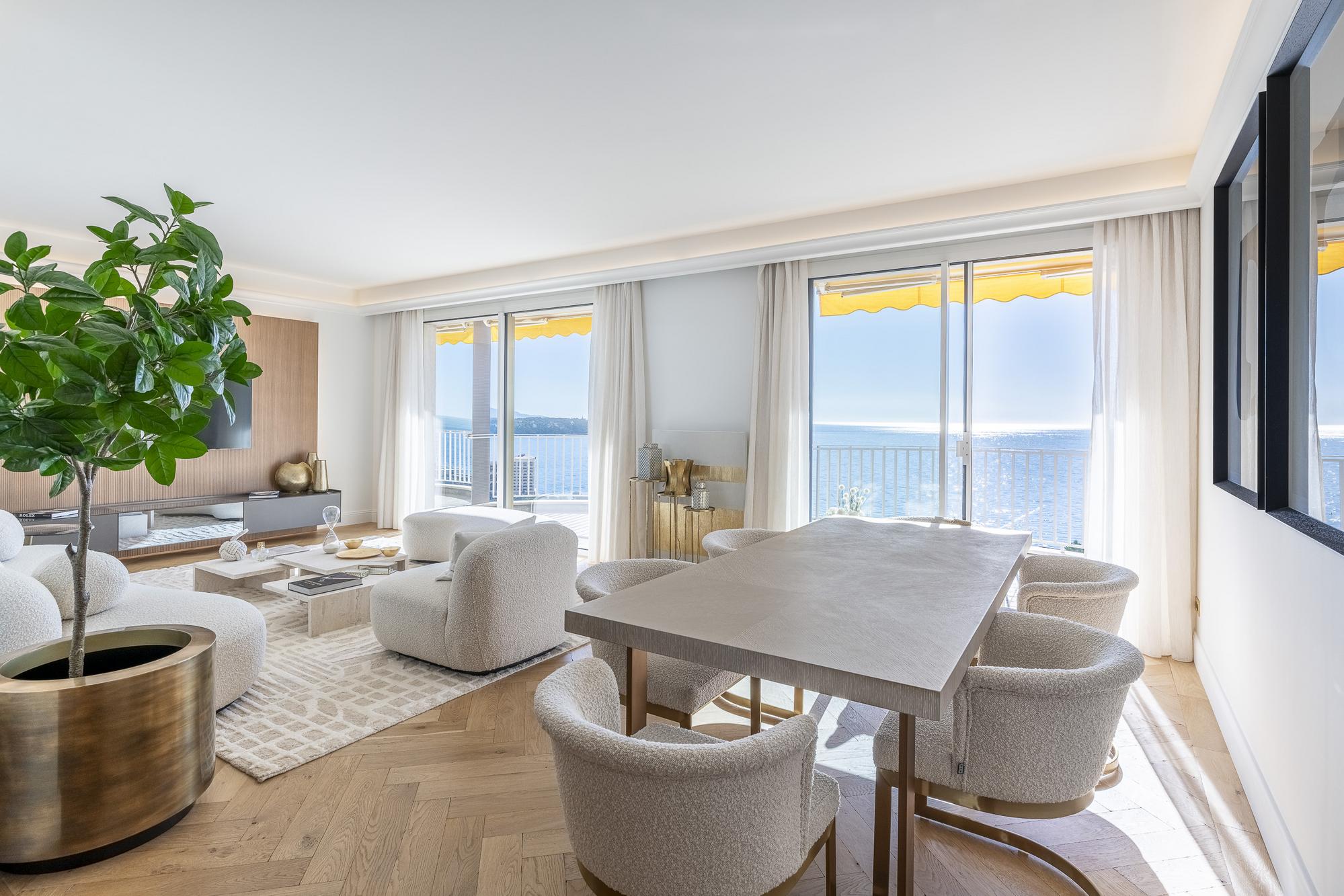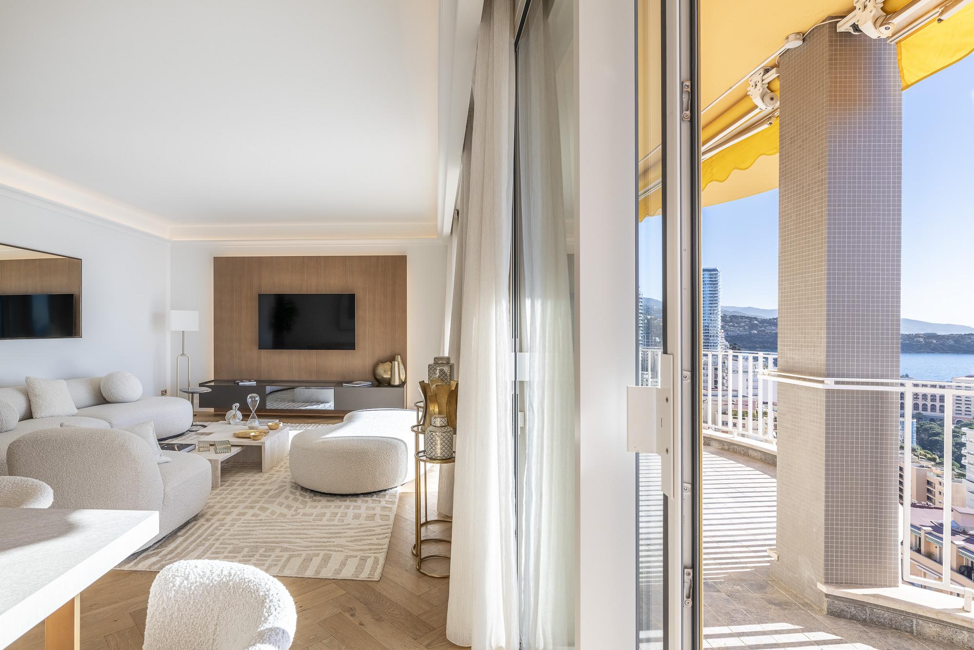 Квартира на верхнем этаже престижного здания Les Abeilles, 3 комнаты после полного ремонта с использованием роскошных материалов. Предлагает восхитительные виды и условия для жизни.