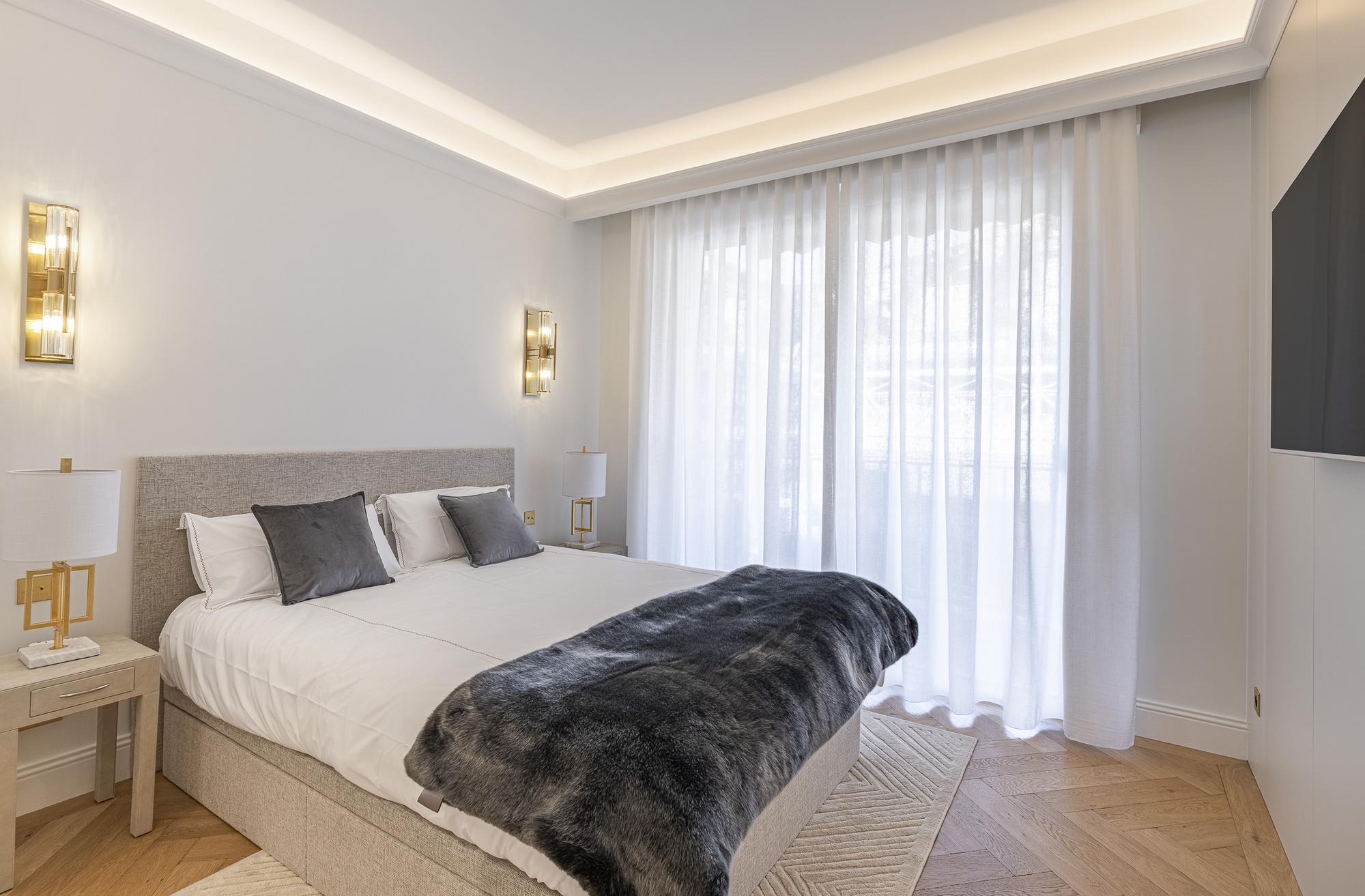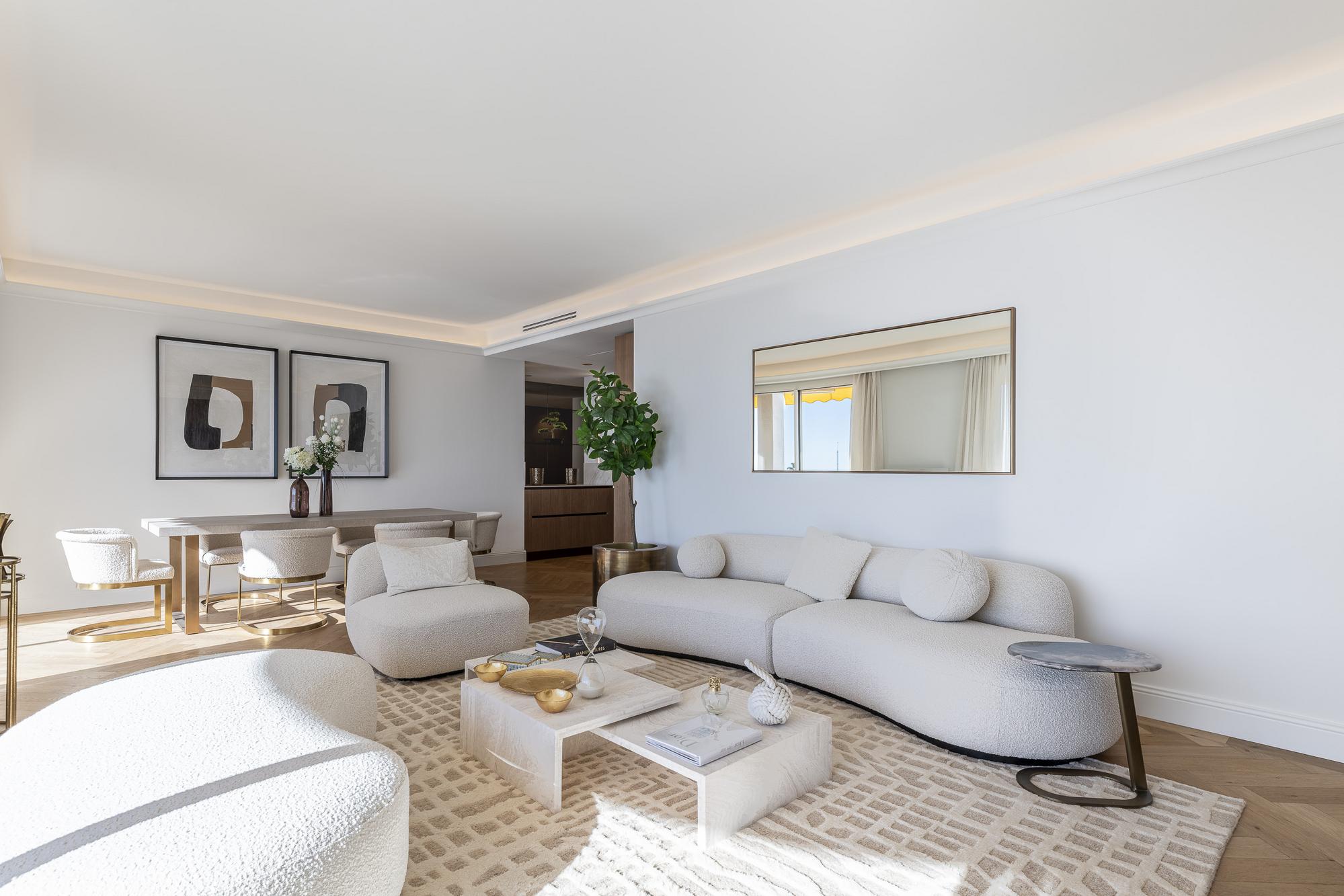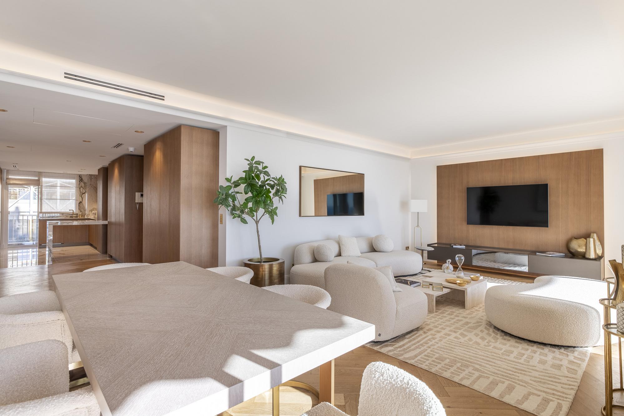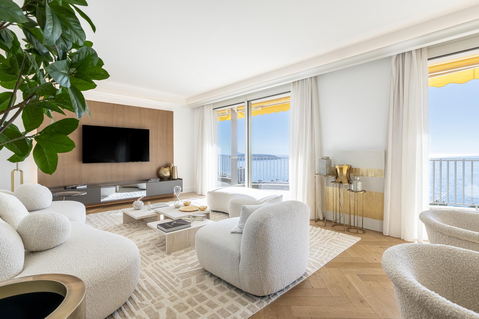 Квартира на верхнем этаже престижного здания Les Abeilles, 3 комнаты после полного ремонта с использованием роскошных материалов. Предлагает восхитительные виды и условия для жизни.