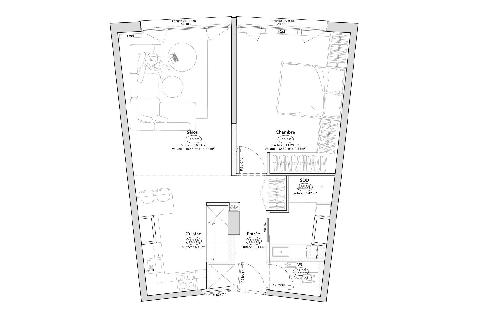 The apartment has been renovated and consists of an entrance hall, a living room with an open-plan, equipped kitchen, a bedroom, a shower room, an independant wc and generous storage space.