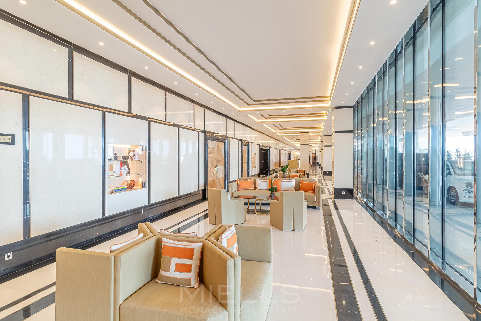 This prestigious sea-view apartment enjoys an exceptional location in the Larvotto district, just steps from the beaches, restaurants and boutiques. With a total surface area of 270 sqm, including a 23 sqm terrace, it offers an outstanding living environment within a residence featuring services worthy of the finest five-star hotels.