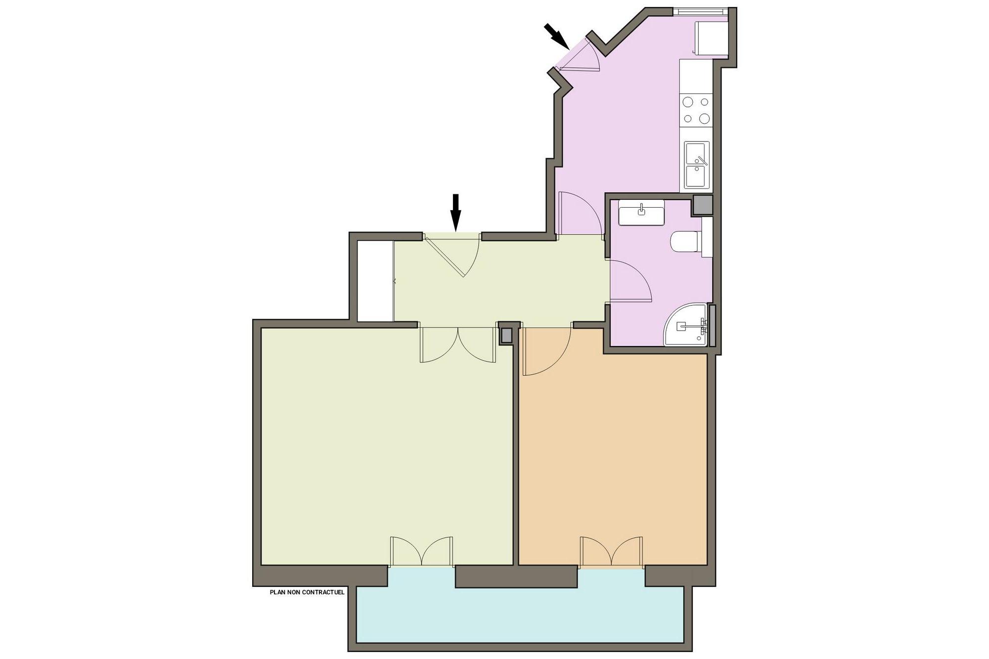 It comprises an entrance hall, a living-room and a bedroom that opens onto a balcony, an independent kitchen, a shower-room with wc.