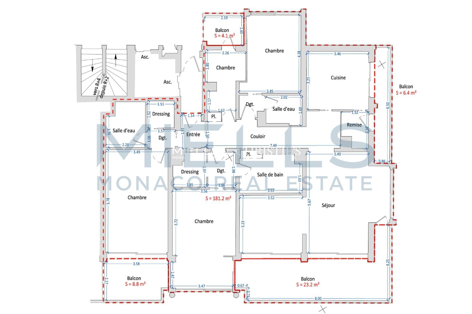 The layout is excellent and includes an entrance hall, a spacious double living room opening onto a terrace with panoramic views of the Mediterranean Sea and the Monte-Carlo Casino, a separate modern kitchen and 3 generous bedrooms, each with its own en-suite bathroom and dressing room.