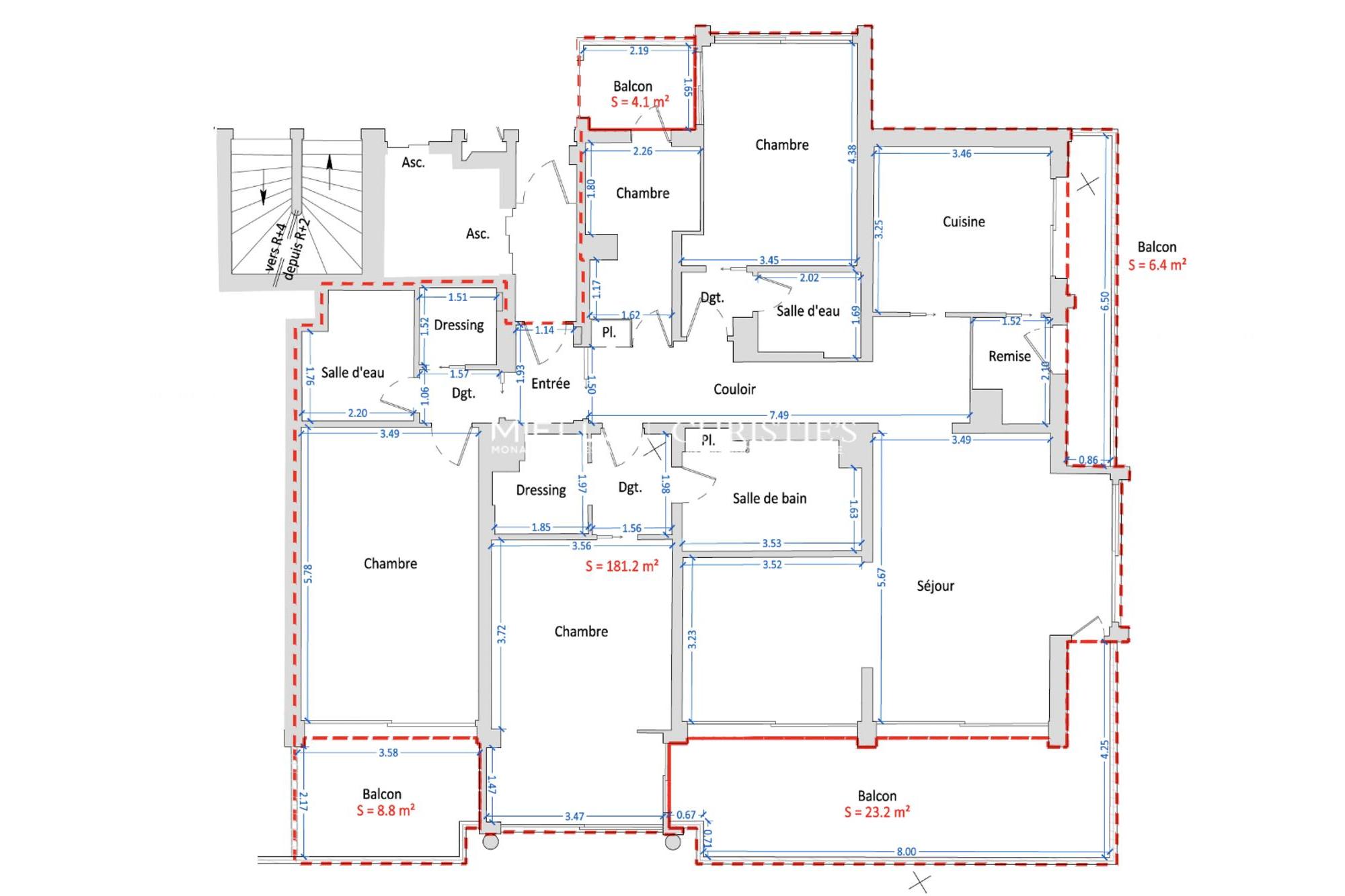 The layout is excellent and includes an entrance hall, a spacious double living room opening onto a terrace with panoramic views of the Mediterranean Sea and the Monte-Carlo Casino, a separate modern kitchen and 3 generous bedrooms, each with its own en-suite bathroom and dressing room.